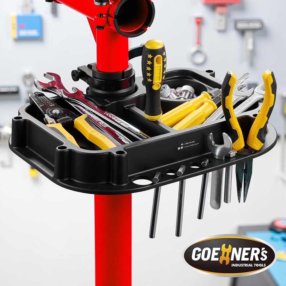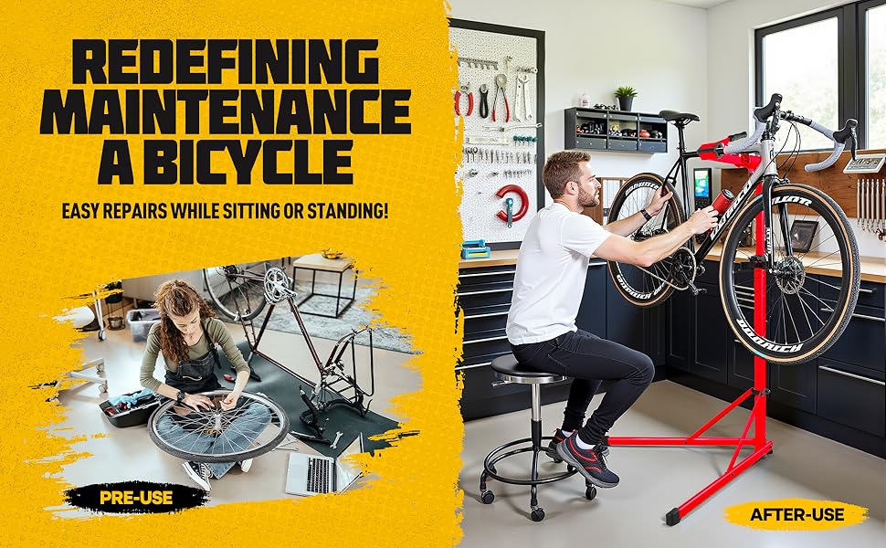 🏆[صينية أدوات الكل في واحد]: حامل إصلاح الدراجات عالي التحمل مجهز بصينية أدوات سريعة الفصل لتخزين أجزاء الدراجة أو البراغي أو الصواميل أو مفكات البراغي بأمان، والحفاظ على أدوات الصيانة الخاصة بك منظمة وفي متناول اليد، مما يجعل أعمال الإصلاح الخاصة بك أكثر كفاءة. مثالية للتعامل مع كل شيء بدءًا من عمليات الضبط البسيطة وحتى الإصلاحات الكاملة لنظام نقل الحركة.