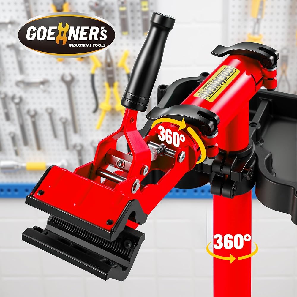 🔄[مشبك تعديل دوار 360 درجة]: اضبط حجم فتحة المشبك (1"-2.4") عن طريق تدوير المقبض السداسي لتثبيت أنابيب الدراجة أو أعمدة المقاعد بأقطار مختلفة (1"-3")، ومشبك دوار 360 درجة لسهولة الوصول إلى أي زاوية أثناء الصيانة لجعل أعمال الإصلاح الخاصة بك أكثر كفاءة. سطح المشبك مغطى بالمطاط لضمان قبضة آمنة وخالية من الخدوش على دراجتك.