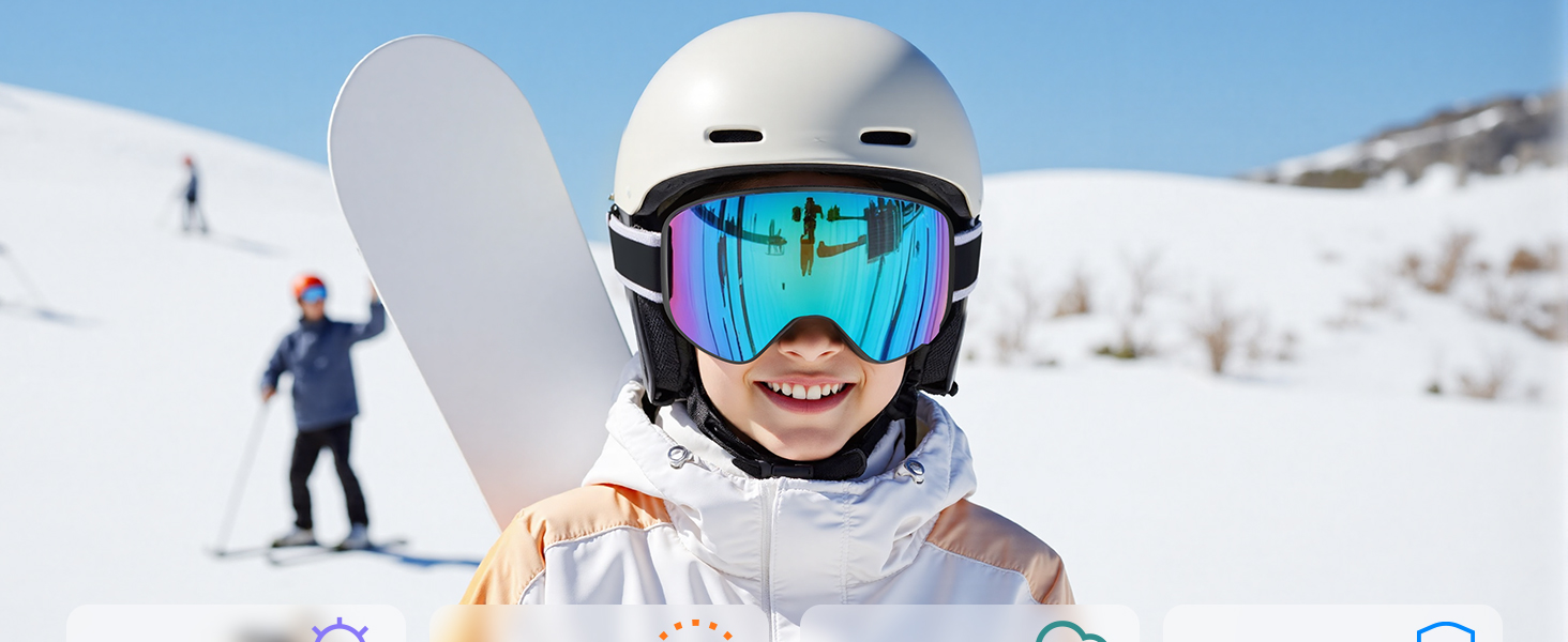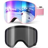 The set includes 1 ski goggles and 1 bonus detachable grey lens