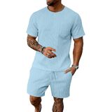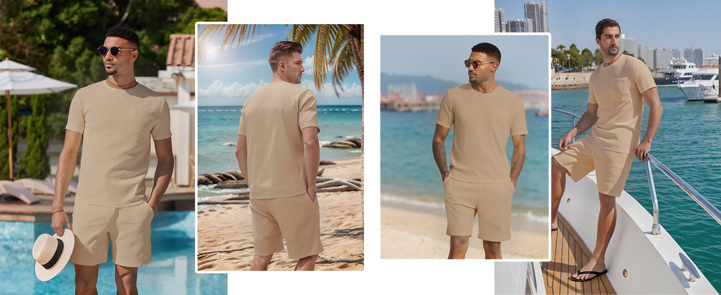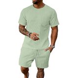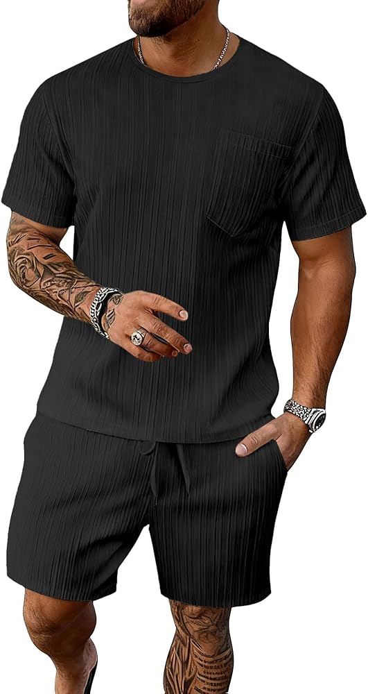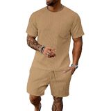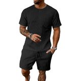 【تصميم متعدد الاستخدامات】تم تصميم هذه البدلة الرياضية قصيرة الأكمام بقمصان ذات رقبة مستديرة كبيرة الحجم، وتصميم من القماش الملمس. يتميز الشورت الرجالي الكاجوال بجيبين مائلين. مما يجعلها مناسبة لمختلف المناسبات، بدءًا من الاسترخاء في المنزل وحتى الأنشطة غير الرسمية في عطلة نهاية الأسبوع