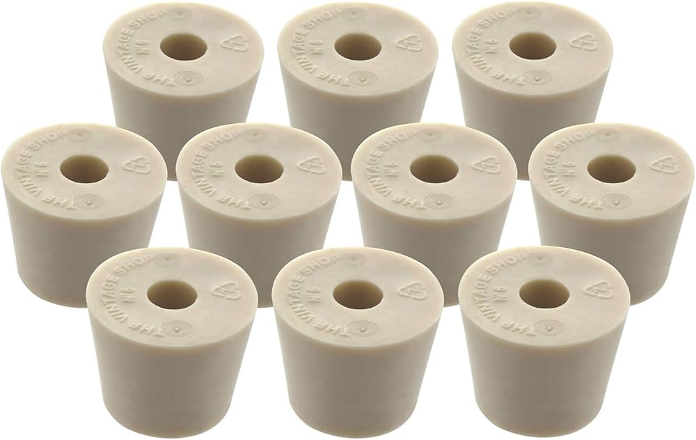 Drilled Rubber Stopper #6 (Set of 10) This is a drilled tapered rubber bung for a better seal and holds the airlock securely in place.