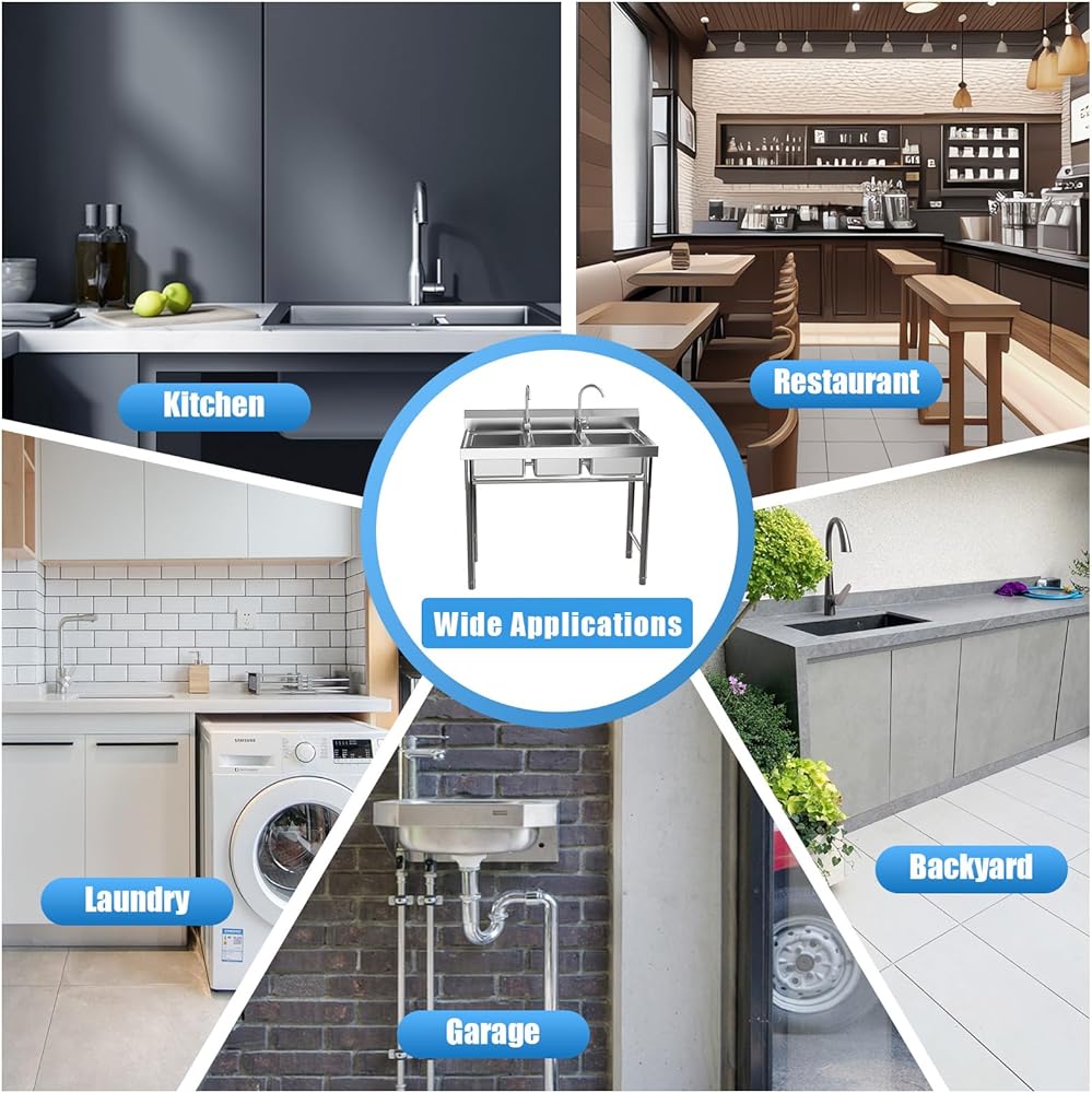 It is an ideal choice for places such as garages, laundry rooms, basements, terraces, bars, kitchens, bathrooms, farms, backyards, commercial restaurants, etc. It is very suitable for manually cleaning food, fruits, vegetables, dishes, bowls, clothes, etc.