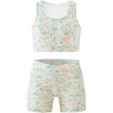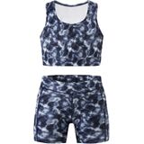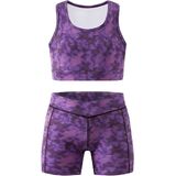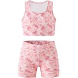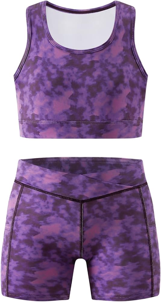 Chichoo الفتيات 2 قطعة مجموعة رياضية تجريب ملابس شرطي تانك القمم دراجة قصيرة الجري الجمباز يهتف أكتيفيوير 6-12 سنة in Kuwait