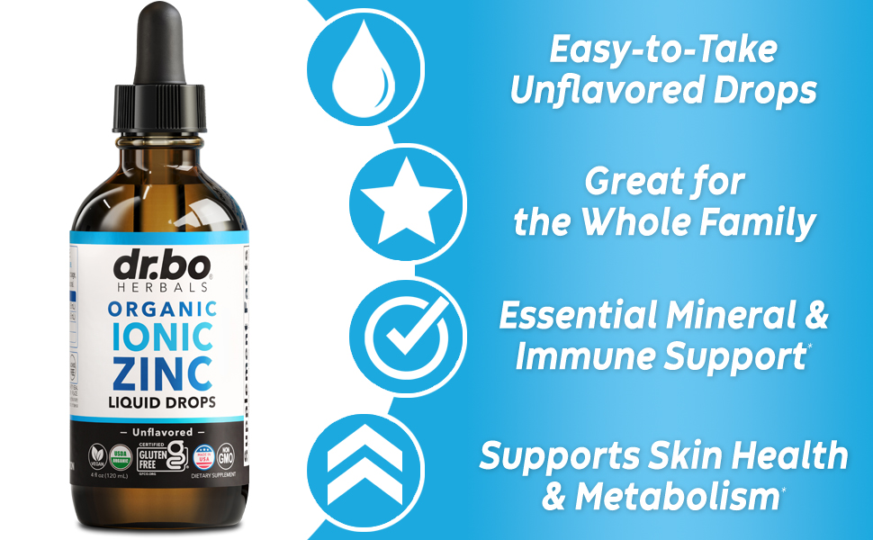 عضوي: صبغة قطرات الزنك السائلة الأيونية العضوية النقية هي قطرات الزنك العضوية المعتمدة من وزارة الزراعة الأمريكية؛ فيتامينات دكتور بو زنك مصنوعة من كبريتات الزنك السائلة عالية الجودة للأطفال والأطفال الصغار والنساء والرجال والبالغين