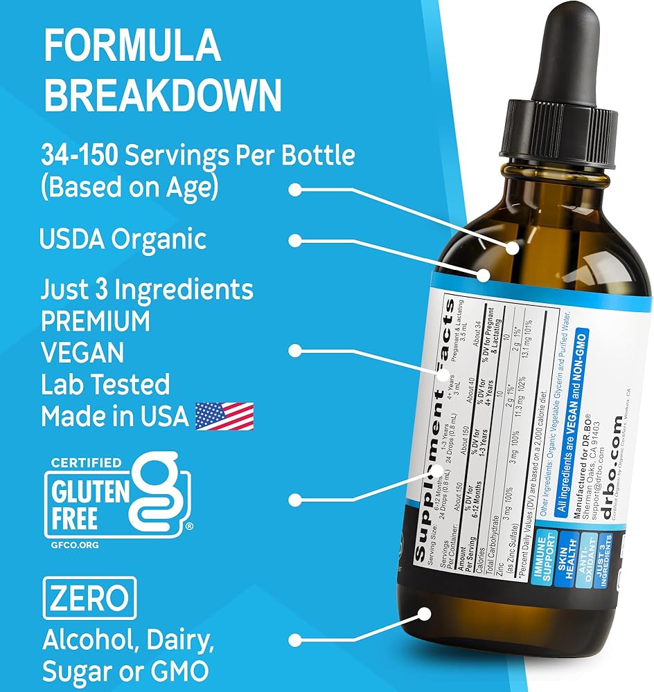 العائلة بأكملها: مكملات دكتور بو الزنك للنساء والرجال والأطفال المعززة للمناعة مصنوعة من قطرات سائلة من الزنك للأطفال من وزارة الزراعة الأمريكية للبالغين والأطفال الصغار؛ مكملات فيتامين الزنك المعدنية غير المعدلة وراثيًا للأطفال