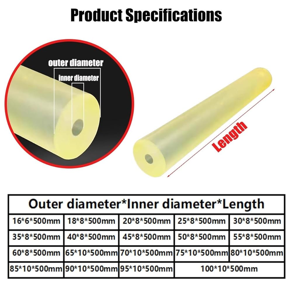 قضيب مجوف من مادة البولي يوريثين، الطول 500 مم قطر 25 مم فتحة 8 مم أنابيب يوريتان قضبان مطاطية مرنة عصي بلاستيكية شفافة لامتصاص الصدمات