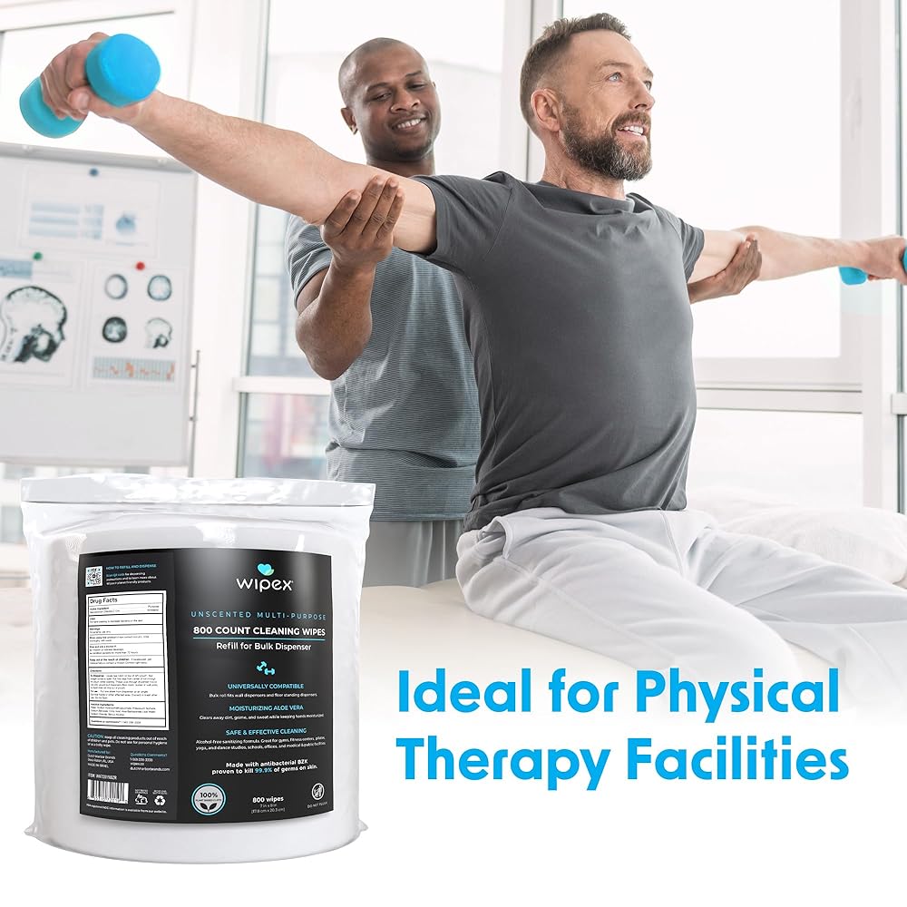 حل شامل للنظافة في صالة الألعاب الرياضية: ارفع مستوى مستلزمات الصالة الرياضية الخاصة بك مع مجموعة مناديل Wipex Gym المبللة، والتي تتميز بموزع مناديل سوداء مع سلة مهملات وأربع لفات من مناديل معدات الصالة الرياضية 800 قطعة، مثالية لتطهير مراكز اللياقة البدنية والأماكن العامة.