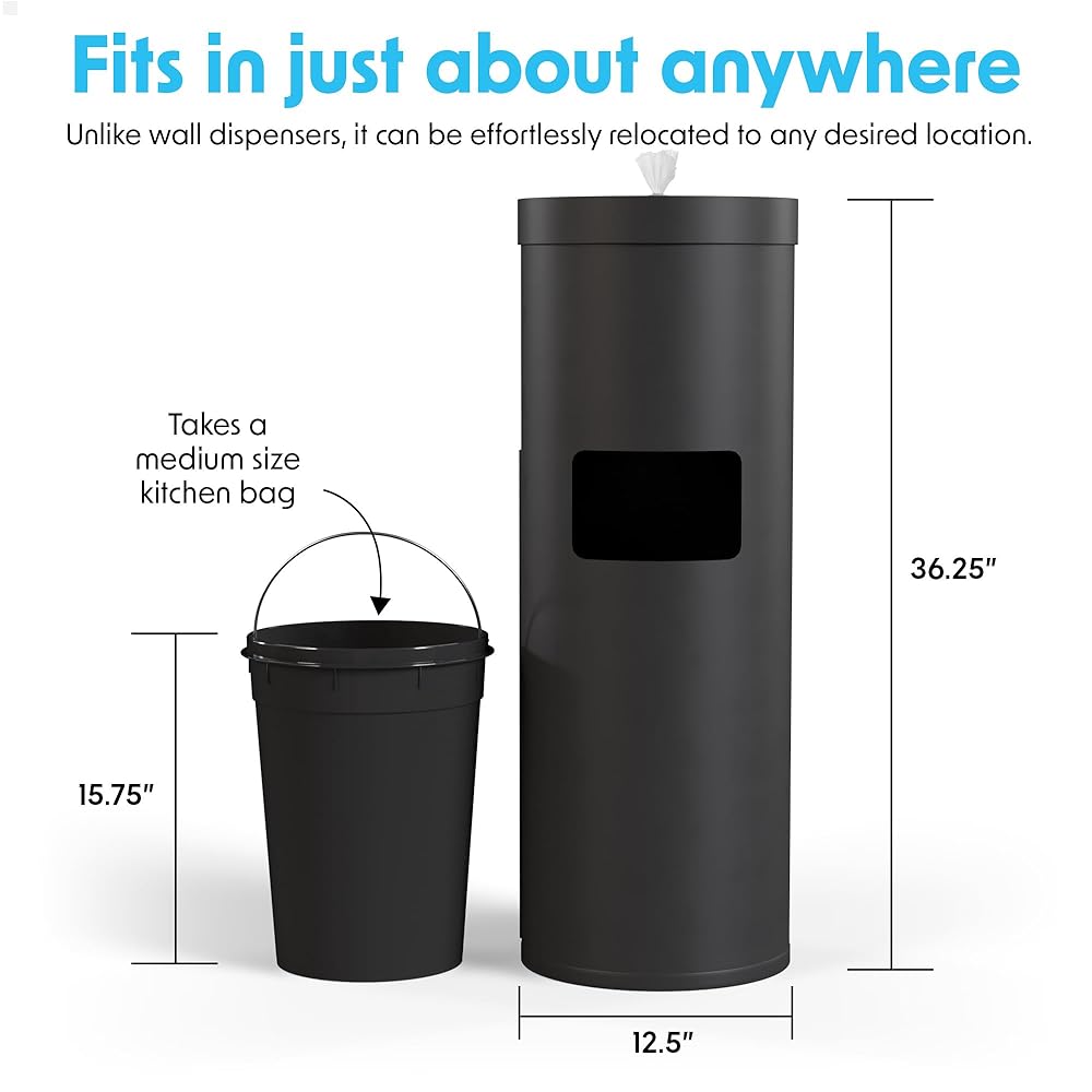 موزع مناديل أسود متين: تم تصميم موزع المناديل وصندوق القمامة المصنوعين من الفولاذ المقاوم للصدأ ليدوم طويلاً. إنه بمثابة موزع فعال للمناديل المبللة في صالة الألعاب الرياضية، ويندمج بسلاسة في أي محطة صرف صحي أو محطة تنظيف في صالة الألعاب الرياضية.