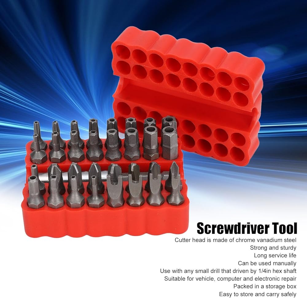 Holigie screwdriver bit ensures longevity and reliability. The security bit set can be used manually or with small drills powered by a 1/4in hex shaft, providing flexibility in usage. Ideal for vehicle, computer, and electronic maintenance, this security screwdriver set offers a comprehensive solution for various tasks. The machined drill bits enable correct screw fitting, safeguarding both the bits and fasteners from any potential damage. Packed in a storage box, this hex drill bit set ensures safekeeping and easy portability, enhancing organization and efficiency.