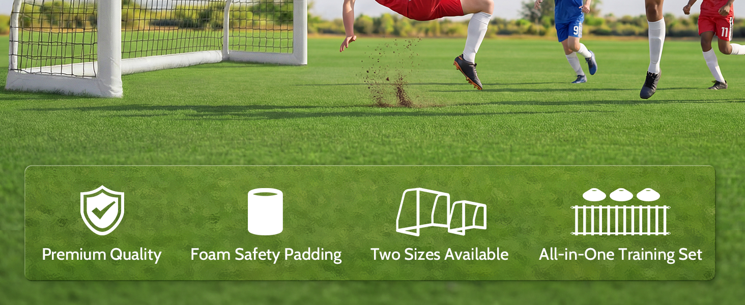 Safety-First Foam Padded Posts: Features exclusive shock-absorbing foam padding wrapped around the heavy-duty metal posts. This protective layer prevents injuries during intense play, making it the safest professional training goal for kids, teens, and active backyard games