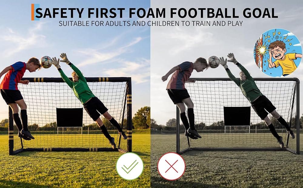 متعددة الاستخدامات ومناسبة لجميع الأعمار: سواء كنت لاعبًا صغيرًا، أو رياضيًا محنكًا، أو مدرب كرة قدم، أو عائلة تبحث عن متعة في الفناء الخلفي، فإن مقاس 8 × 5 أقدام يلبي الجميع.