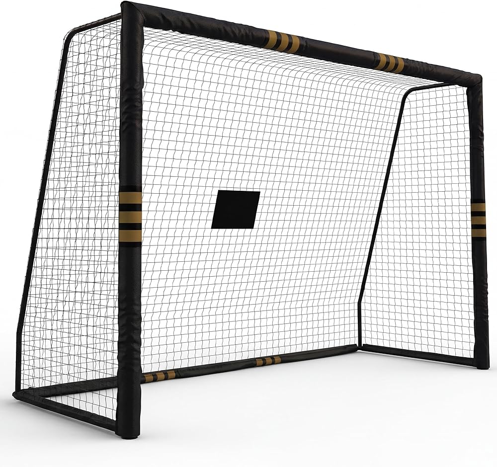 هدف كرة القدم في الفناء الخلفي PeakPursuit مقاس 8 × 5 أقدام، شبكة كرة قدم بإطار معدني شديد التحمل مع إسفنجة لؤلؤية مضادة للتصادمات، عمود هدف مبطن بالفوم مقاوم للطقس، سهل التجميع