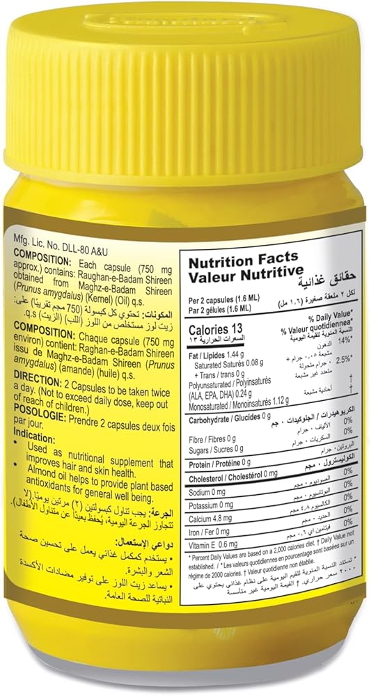 • كبسولات زيت اللوز الحلو النقي.