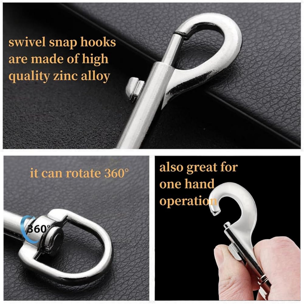 • Quality material: Our swivel snap hooks are made of high quality zinc alloy, corrosion-resistant, anti-rust, reliable safety, light and durable.