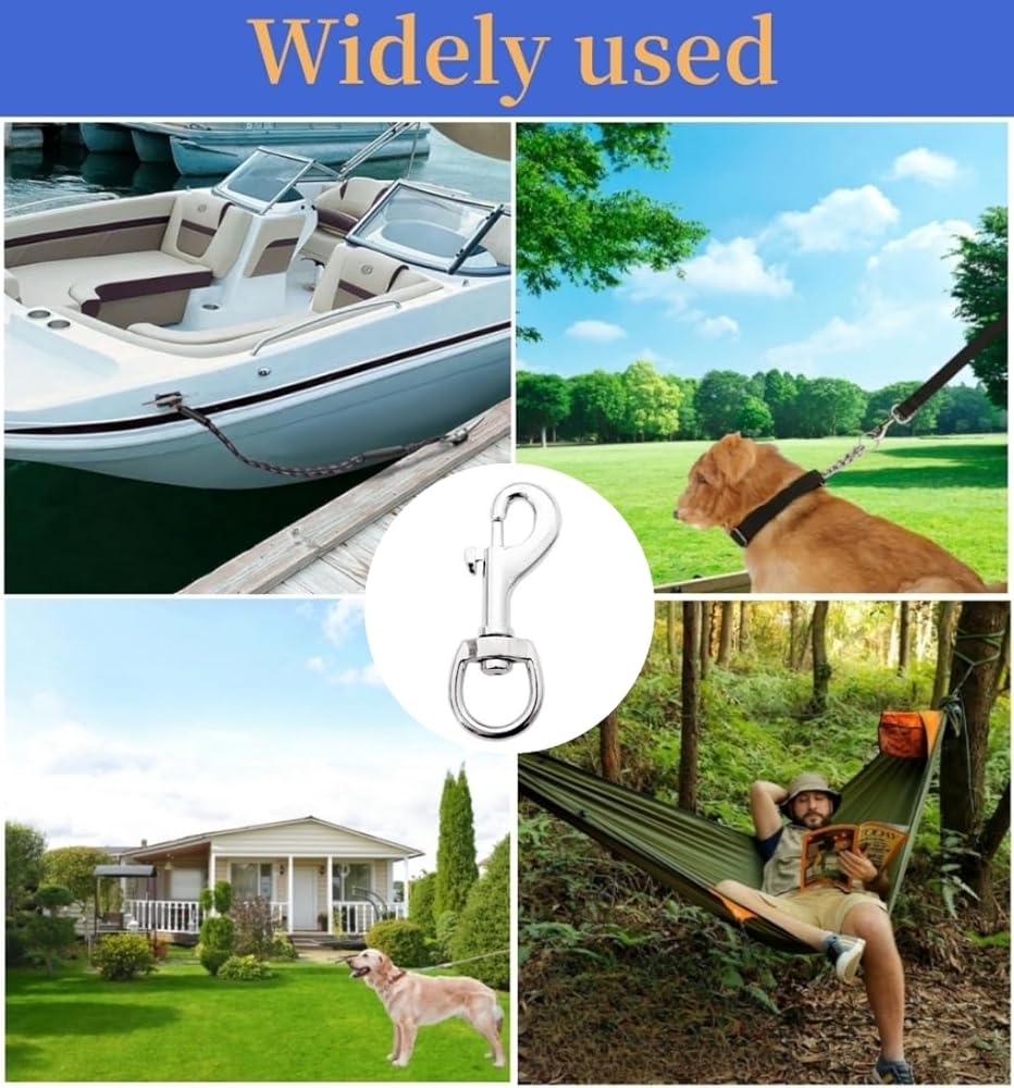 • Wide Application: the of the metal ended bolt snap is good for using with rope, chain, straps, animal leashes, diving, flag poles, pet leashes, tarpaulin covers, clotheslines,chains, and other home, farm and recreational applications.
