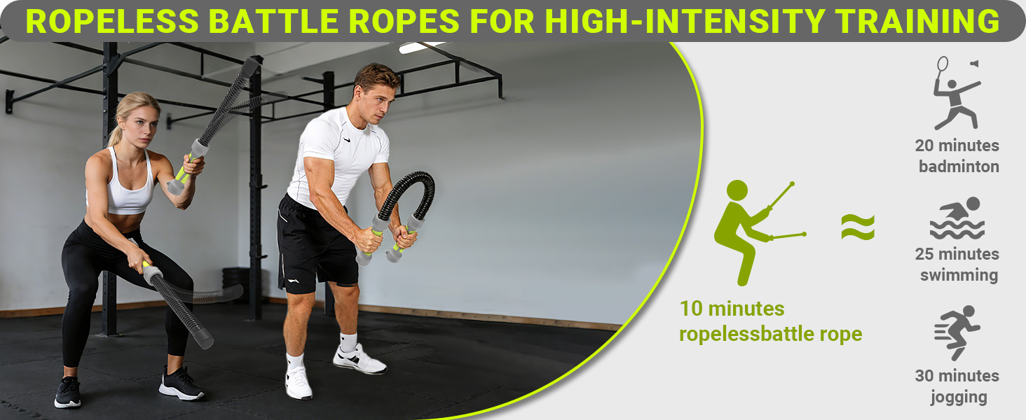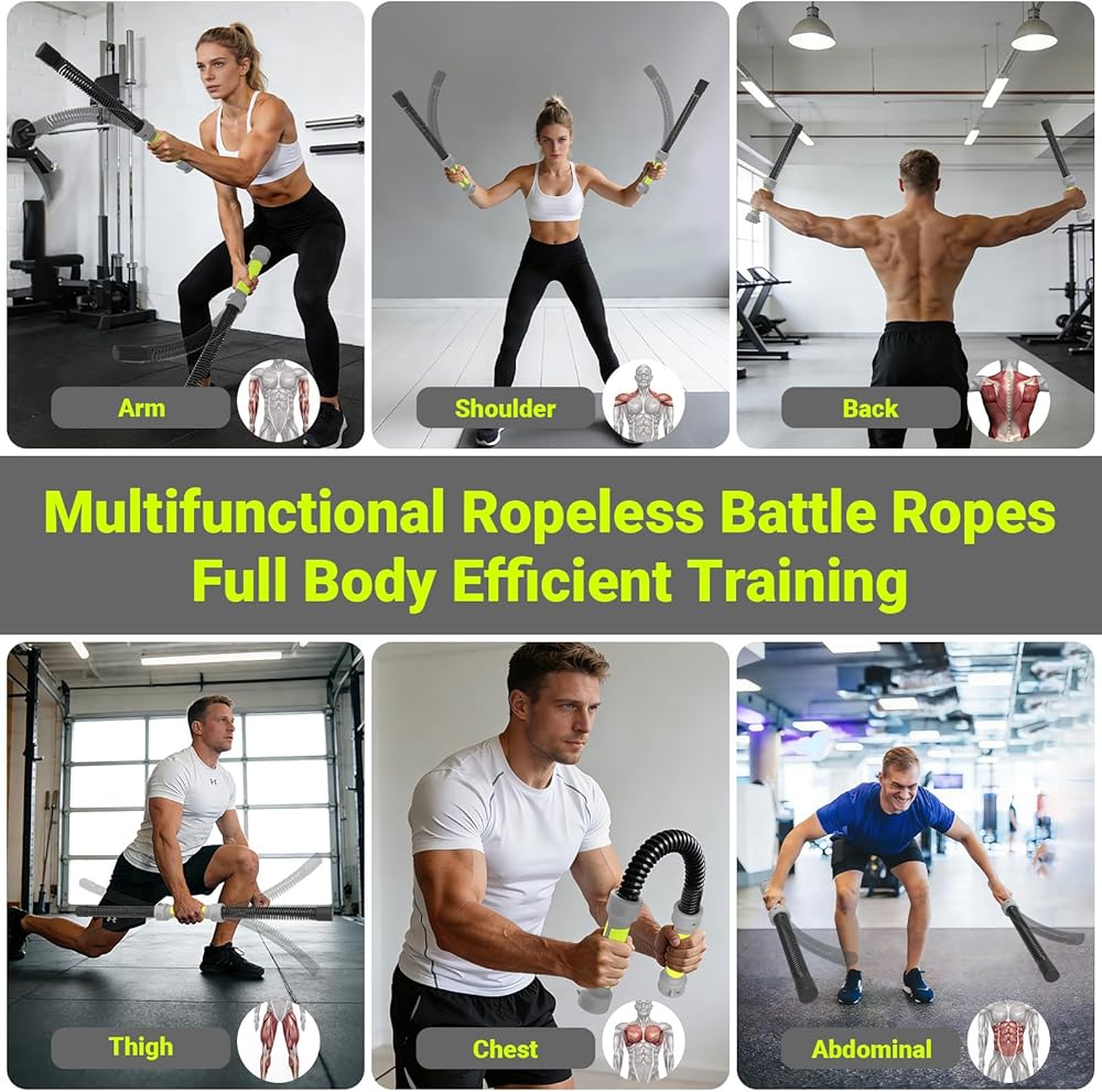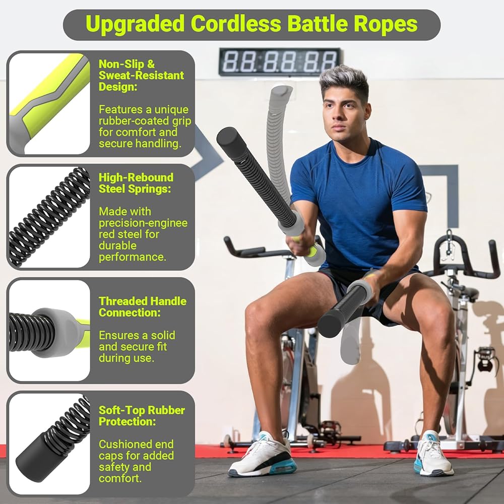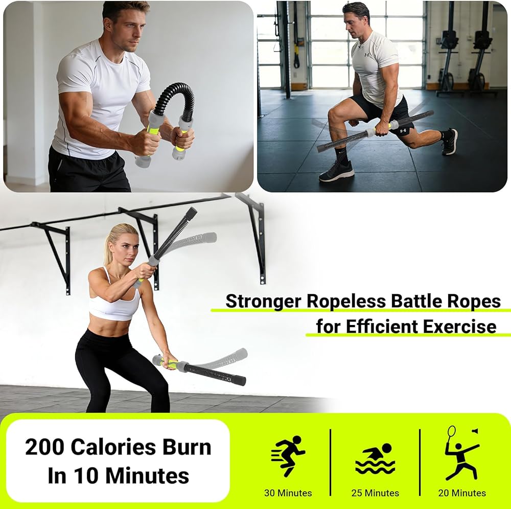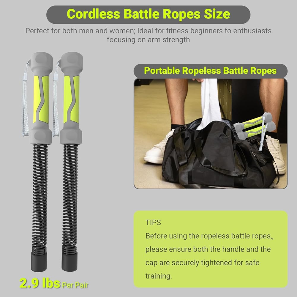 حبال معركة لاسلكية مرجحة، 2 في 1 حبال معركة محمولة بدون حبال لصالة الألعاب الرياضية المنزلية، حبال تمرين لـ HIIT، تدريبات هوائية قوية ومنخفضة التأثير، معدات تمارين متعددة الاستخدامات للرجال والنساء