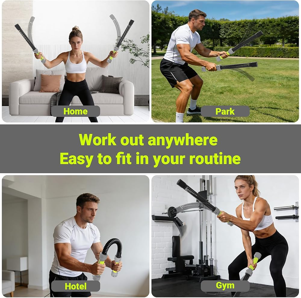 【هيكل متين - مصمم ليدوم طويلاً】قلب فولاذي صلب وزنبرك عالي المرونة يتحمل التدريب اليومي المكثف والتدريب الثقيل - بدون ترهل أو فقدان الشكل. طلاء مضاد للصدأ يقاوم العرق والرطوبة من أجل متانة طويلة الأمد، بينما تحافظ صواميل قفل الأمان المعززة والمقبض المدمج الآمن على قبضتك ثابتة. هادئ، ومحمول، وجاهز لأي شيء.