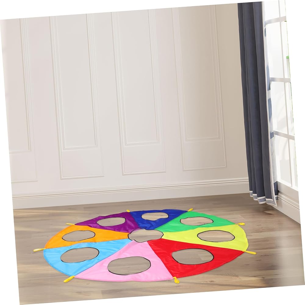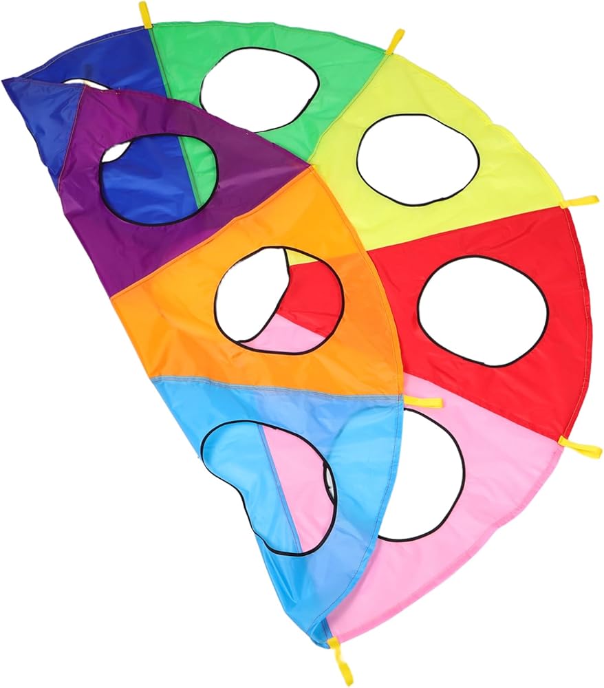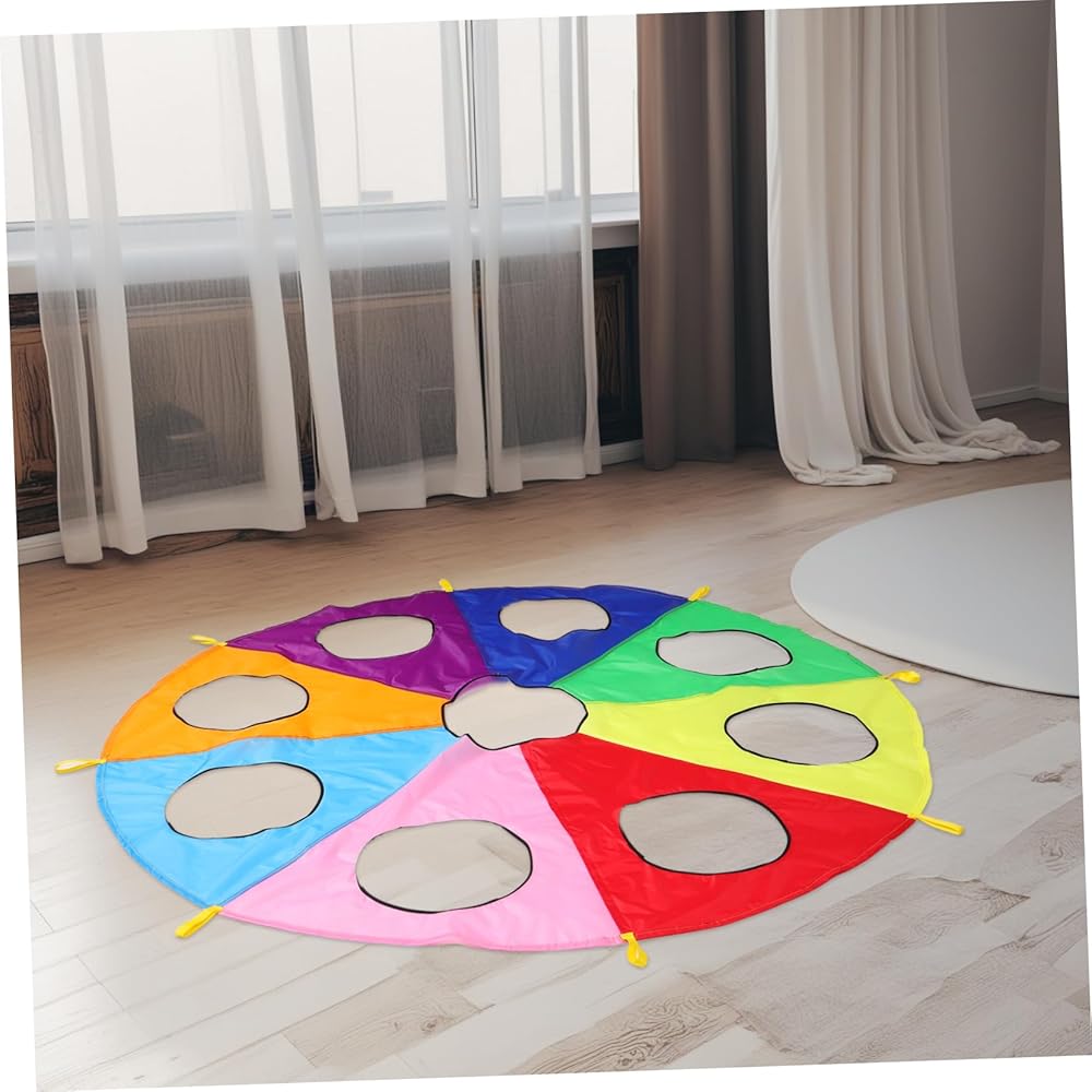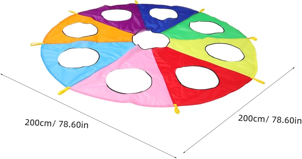 games Ideal for early learning environments, this rainbow parachute with holes offers a unique the game.early learning pounding can take turns or work in teams to hit targets, improving their hand-eye coordination and reflexes. parachute game The parachute's design ensures that every is involved, making it a great tool for