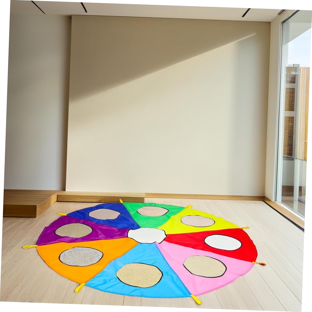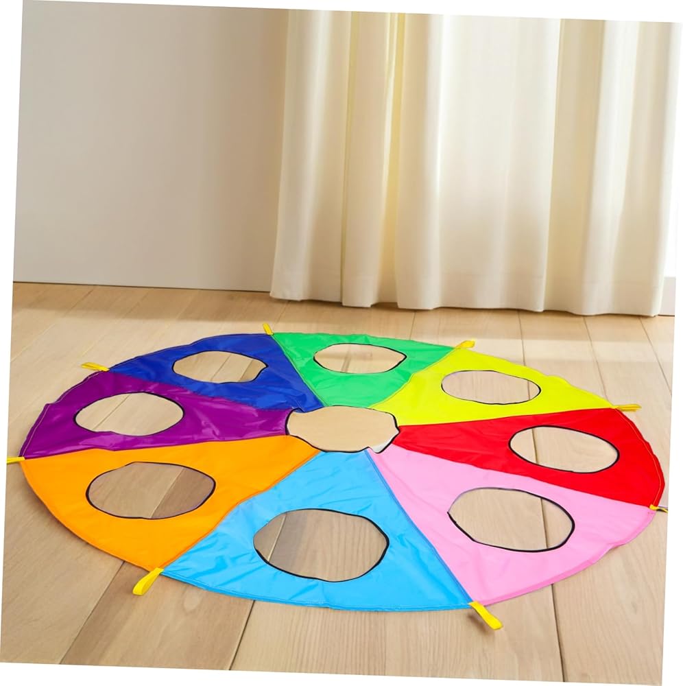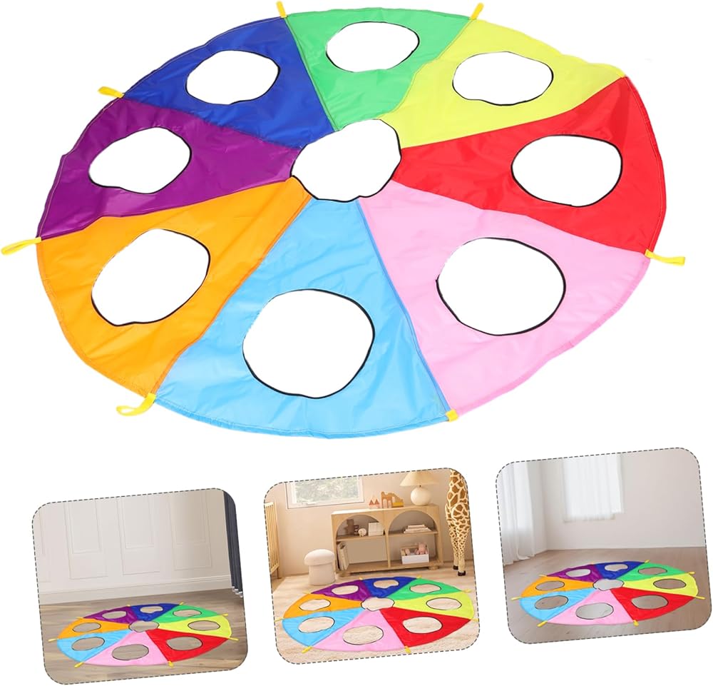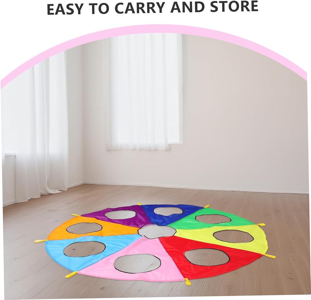 games Ideal for early learning environments, this rainbow parachute with holes offers a unique the game.early learning pounding can take turns or work in teams to hit targets, improving their hand-eye coordination and reflexes. parachute game The parachute's design ensures that every is involved, making it a great tool for