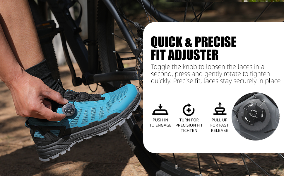 تصميم خفيف الوزن: يتميز حذاء ركوب الدراجات هذا للجنسين بمقبض تعديل دقيق واحد، مما يسمح بتعديل دقيق للضيق بيد واحدة ليناسب ارتفاعات مشط القدم المختلفة بسرعة. النعل الأوسط المصنوع من النايلون المدمج + هيكل النعل الأوسط خفيف الوزن من مادة إي في إيه يقلل بشكل كبير من اهتزاز القدم أثناء استخدام الدواسات بدون مشبك.
