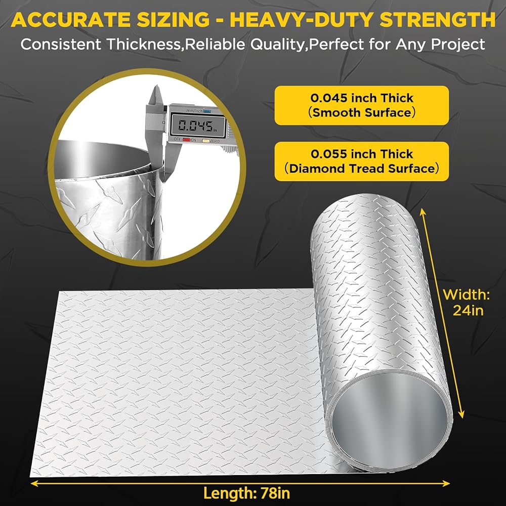 سمك صلب 0.045 بوصة - خفيف ولكنه قوي - يتكون من صفائح ألومنيوم معدنية بسمك 0.045 بوصة، يبلغ وزن هذه اللوحة الماسية حوالي ثلث وزن الفولاذ المشابه ولكنها أقوى بكثير من الألواح الرقيقة والمختومة المجوفة التي تنحني بسهولة. يبقى مسطحًا، ويحافظ على شكله حول المنحنيات، ويتم تركيبه بشكل أسرع مع ضغط أقل أثناء العمل العلوي.