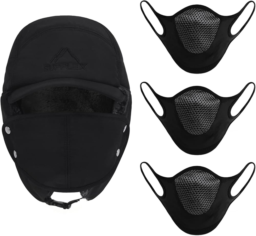 • تشمل العبوة: 1 * قبعة تزلج سوداء متعددة الوظائف + 3 * أغطية شبكية قابلة للتنفس لتدفئة الوجه باللون الأسود بالكامل