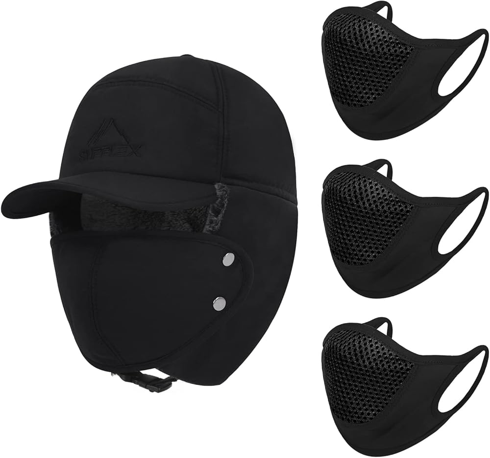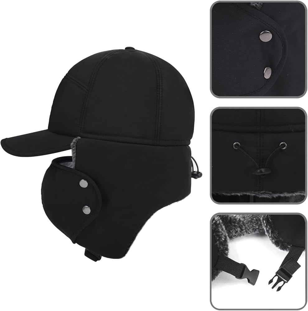 قبعة شتوية 3 في 1 مبطنة بالفرو الحراري مع غطاء للأذن لتدفئة الوجه قبعة بيسبول مقاومة للرياح