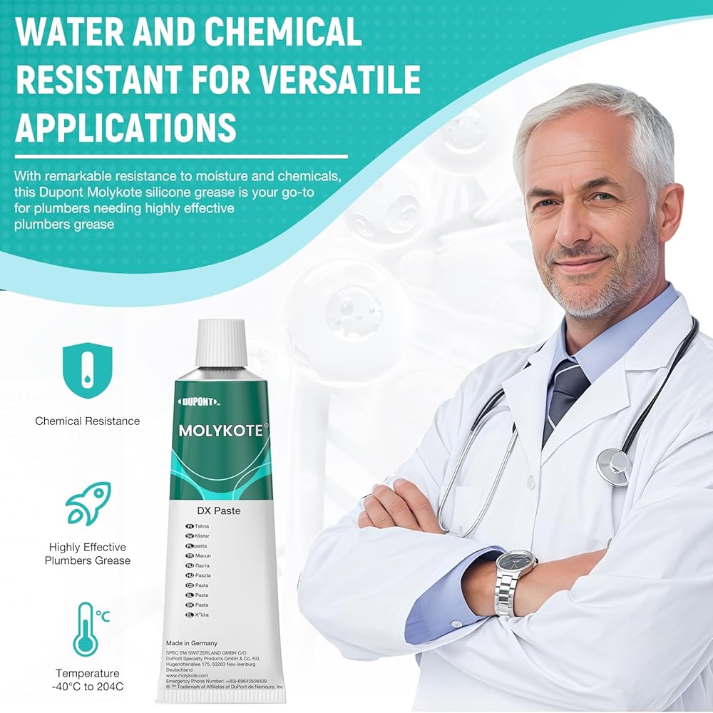 Molykote DX Paste: 50g 1.75oz, Color White, Lubricant Grease, High Temperature Anti-seize Grease, Lubrication of friction contacts of instruments, It makes the service life of the instruments longer and is especially suitable for the use of various mechanical precision instruments. For example Watch Lubrication, Gear Lube, Plastic part Lubricant. Professional lubricants