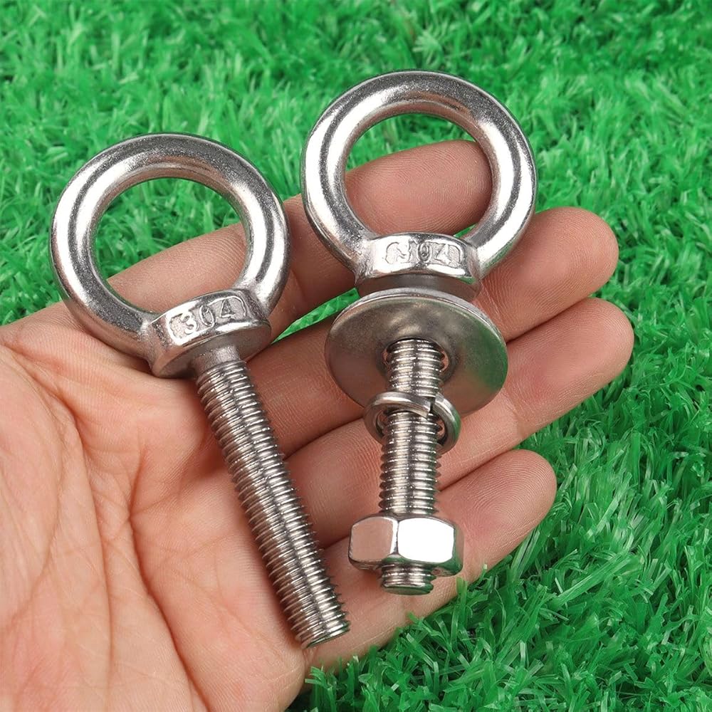 Our Eyebolts is Made For High Quality 304 Stainless Steel ; Which is known for its Excellent Strength ; Durability ; and Resistance to rust and Corrosion;can be used on Swing Chair, Hammock At Garden,clotheslines, fencing, string light hanging, boats or docks as a tie down loop, hanging curtains or decorations and so on