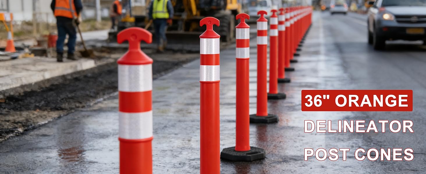 رؤية 360 درجة ليلاً ونهارًا: يتميز كل مخروط برتقالي ساطع بشريطين عاكسين عالي الكثافة مقاس 3 بوصات، مما يضمن رؤية واضحة 360 درجة خلال النهار وفي الليل أو في الطقس السيئ مثل المطر والثلج والضباب.