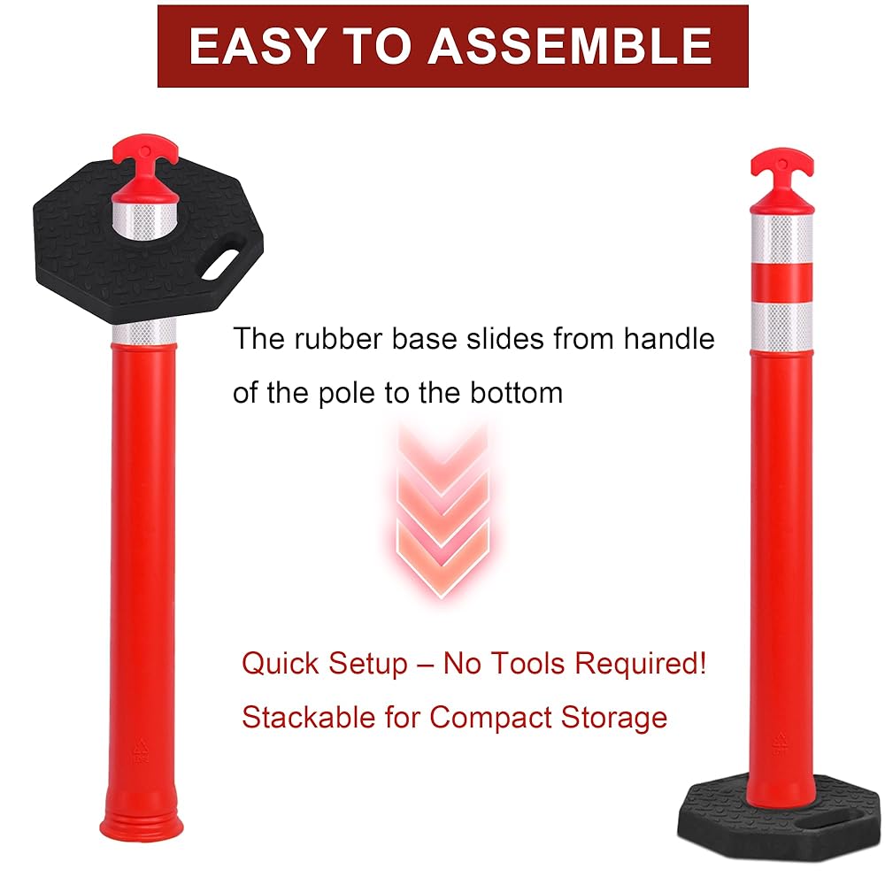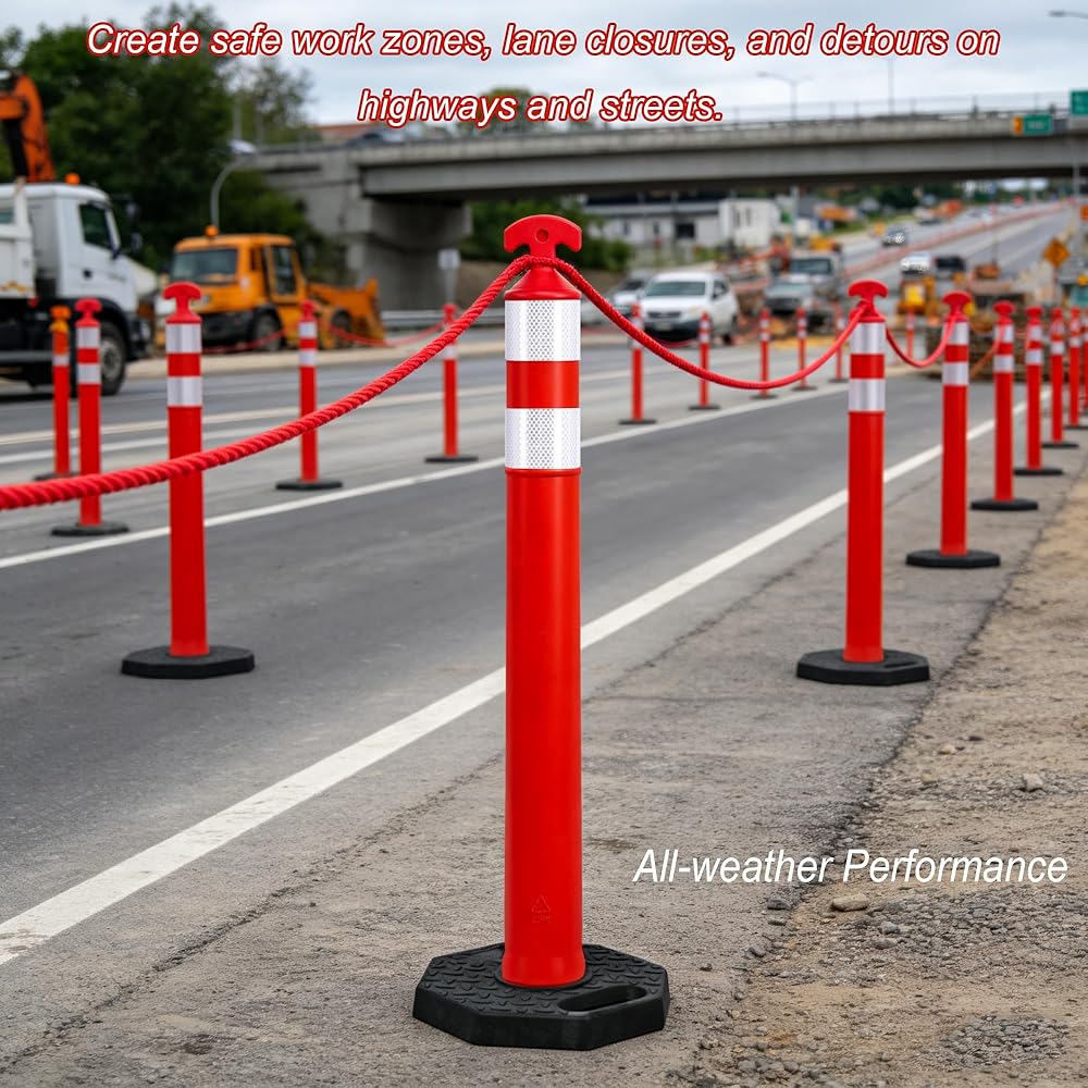 ارتفاع 91.44 سم مع قاعدة مرجحة 30.48 سم × 30.48 سم: احصل على الرؤية والثبات مع المخاريط الطويلة مقاس 91.44 سم. توفر القاعدة المطاطية شديدة التحمل مقاس 30.48 سم × 30.48 سم مركزًا منخفضًا للجاذبية لمنع الانقلاب في الرياح أو المناطق المزدحمة.
