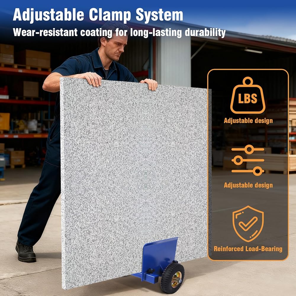 Multi-Purpose Panel Dolly: Engineered for hauling, this panel dolly's thick steel frame and anti-wear coating stand up to rigorous use, making it for stone, glass, drywall, and large panels.
