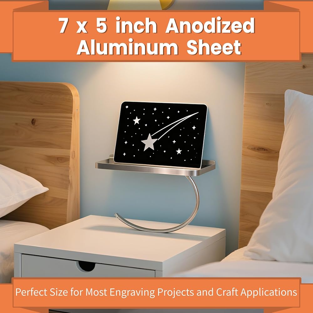 الأبعاد: يبلغ مقاس كل ورقة من الألومنيوم المؤكسد 17.78 × 12.7 سم، حجم مثالي لمعظم مشاريع النقش والتطبيقات اليدوية.