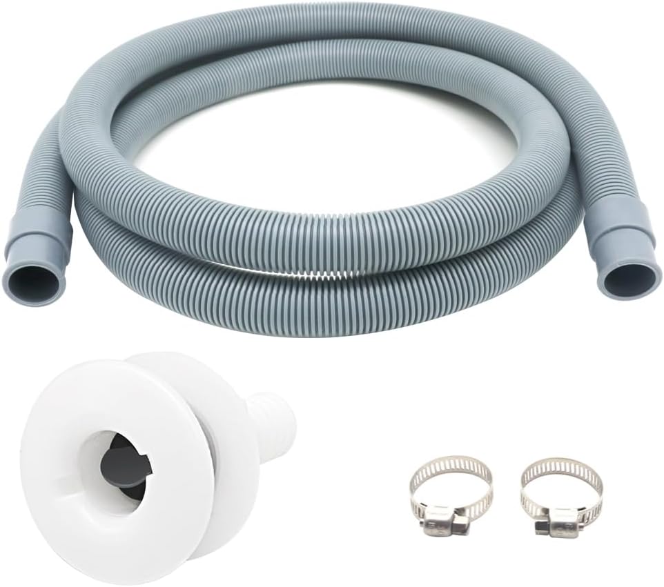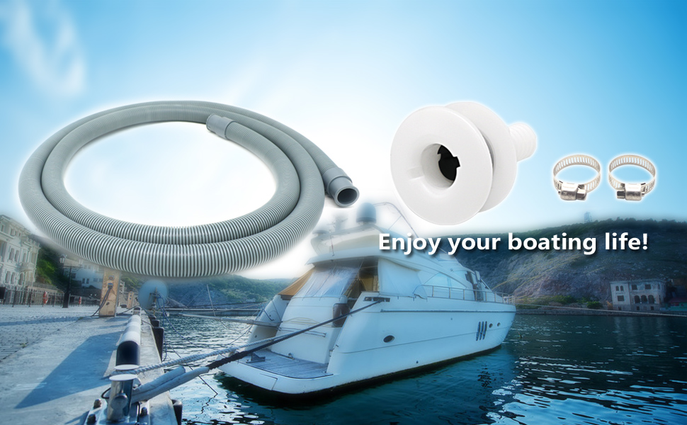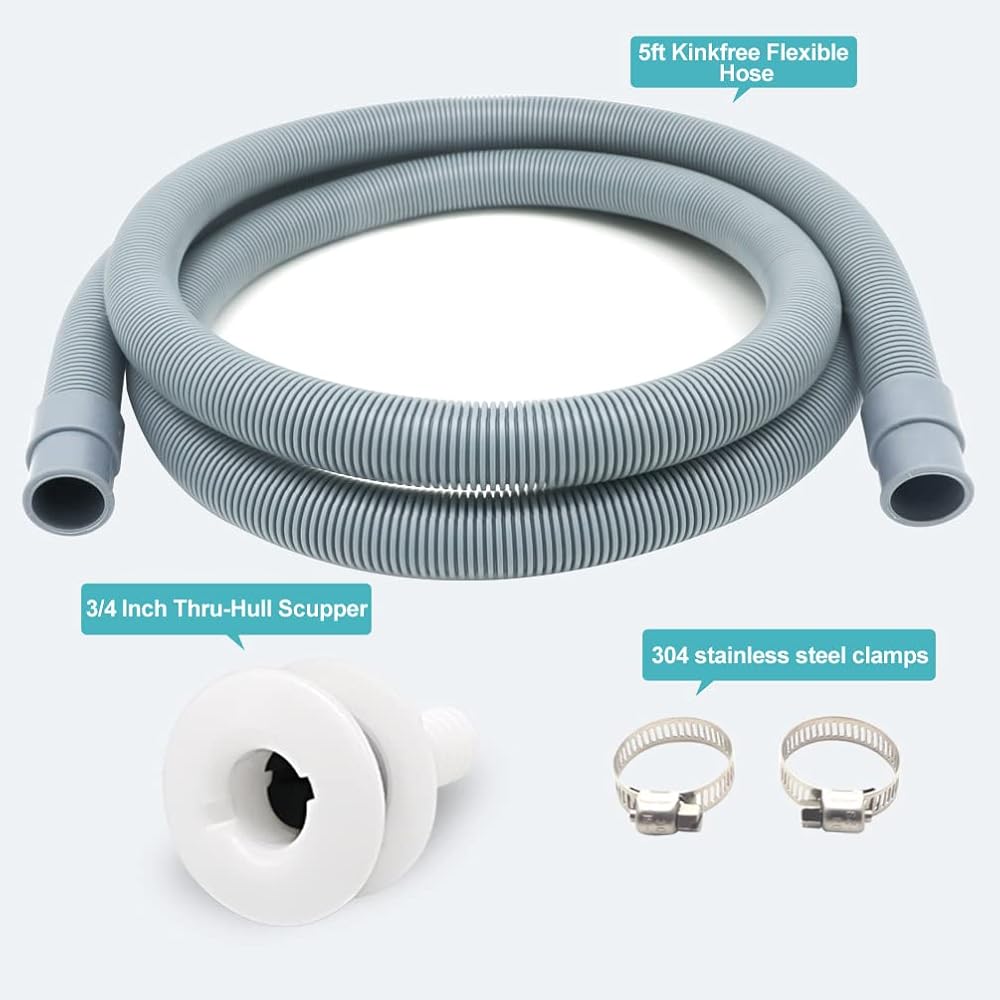 خرطوم مضخة آسن البحرية 3/4 بوصة مجموعة السباكة، 5 أقدام طويلة، أبيض مستقيم من خلال هال سكوبر صمام الزعنفة