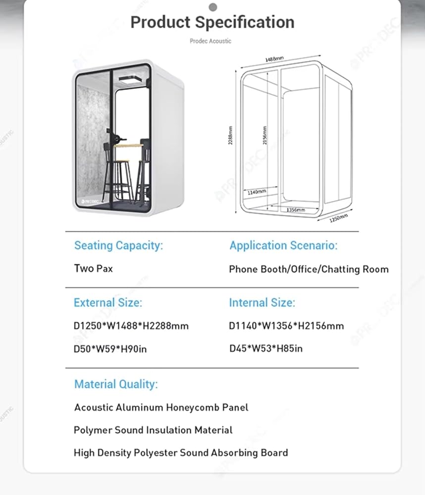 Premium Sound Insulation & Noise Reduction Structure: Aluminum frame with 5cm thick fireproof sound absorbing cotton in the middle and 4.0 hydrocarbon plate covering above and below.1.0 high temper glass which fireproof and soundproof with durable long life,18mm thickness MDF ground and high quality with soundproof carpet.