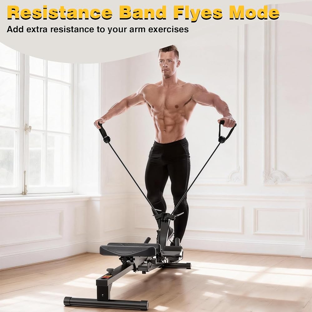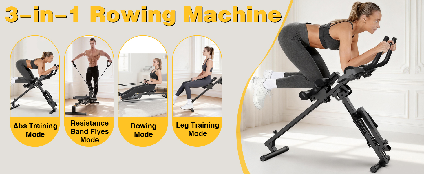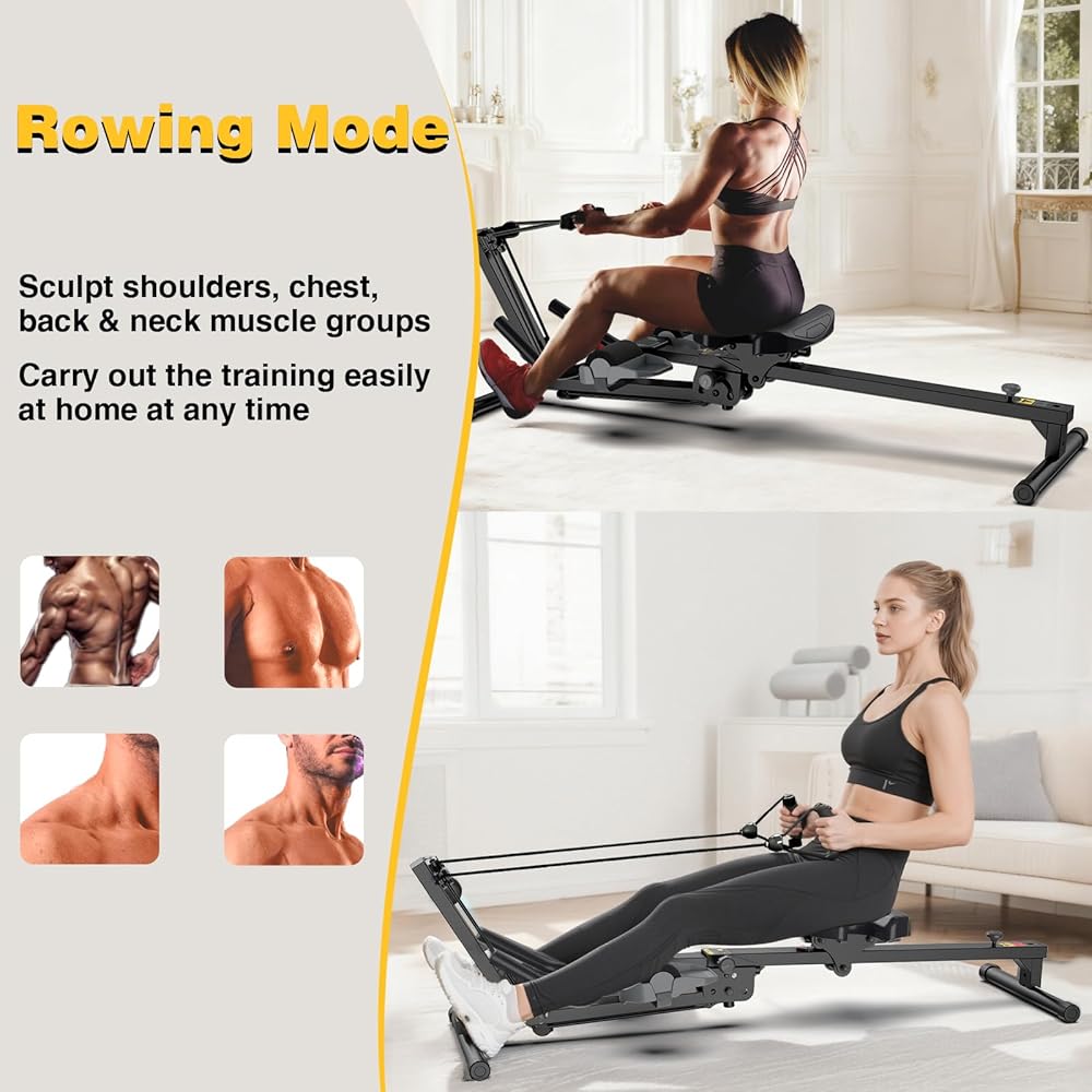 قابل للطي وسهل التجميع: يصل الإطار الرئيسي مجمعًا مسبقًا بنسبة 80% للإعداد السريع، كما أن تصميمه القابل للطي الموفر للمساحة يجعله مثاليًا للاستخدام في المنزل أو المكتب مما يوفر أداء صالة الألعاب الرياضية المنزلية الكاملة في آلة تجديف 3 في 1 متعددة الاستخدامات لتدريبات كاملة للجسم بالكامل.