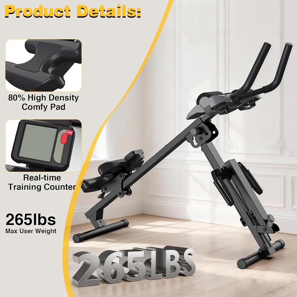 هيكل قوي وثابت: مصنوع بقاعدة فولاذية مثلثة معززة، يدعم هذا المدرب المستخدمين الذين يصل وزنهم إلى 265 رطلاً، ويحافظ إطاره عالي التحمل المقاوم للصدأ على الثبات حتى أثناء التدريبات المكثفة مما يتيح تدريبًا آمنًا وفعالًا لكامل الجسم.