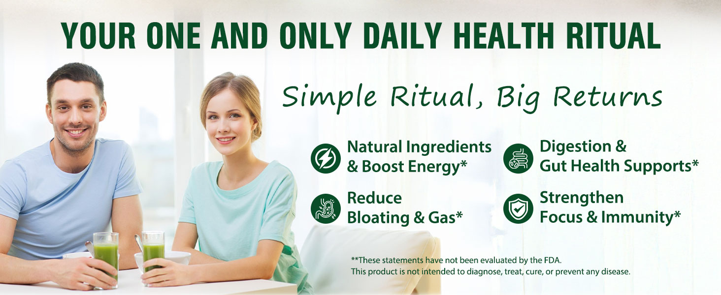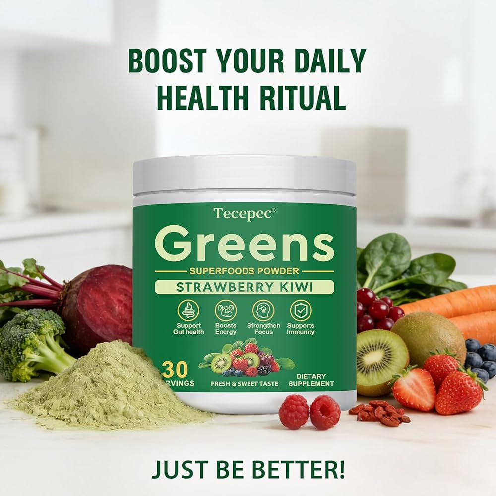 • Greens Daily Blooming Vitality: انغمس في خضراواتنا الحلوة الخفيفة والمنعشة ومسحوق الأطعمة الفائقة - وهو مكمل متعدد الفيتامينات وفاكهة وخضروات مصنوع بدقة ومعبأ بأكثر من 38 مكونًا قويًا. تم تصميمه خصيصًا لتعزيز صحة الأمعاء، وتوازن الهرمونات، وتقوية وظائف المناعة، وتعزيز مستويات الطاقة الطبيعية، فهو يبقيك نشيطًا ومركزًا ويدعم عافيتك بشكل عام على مدار الساعة.