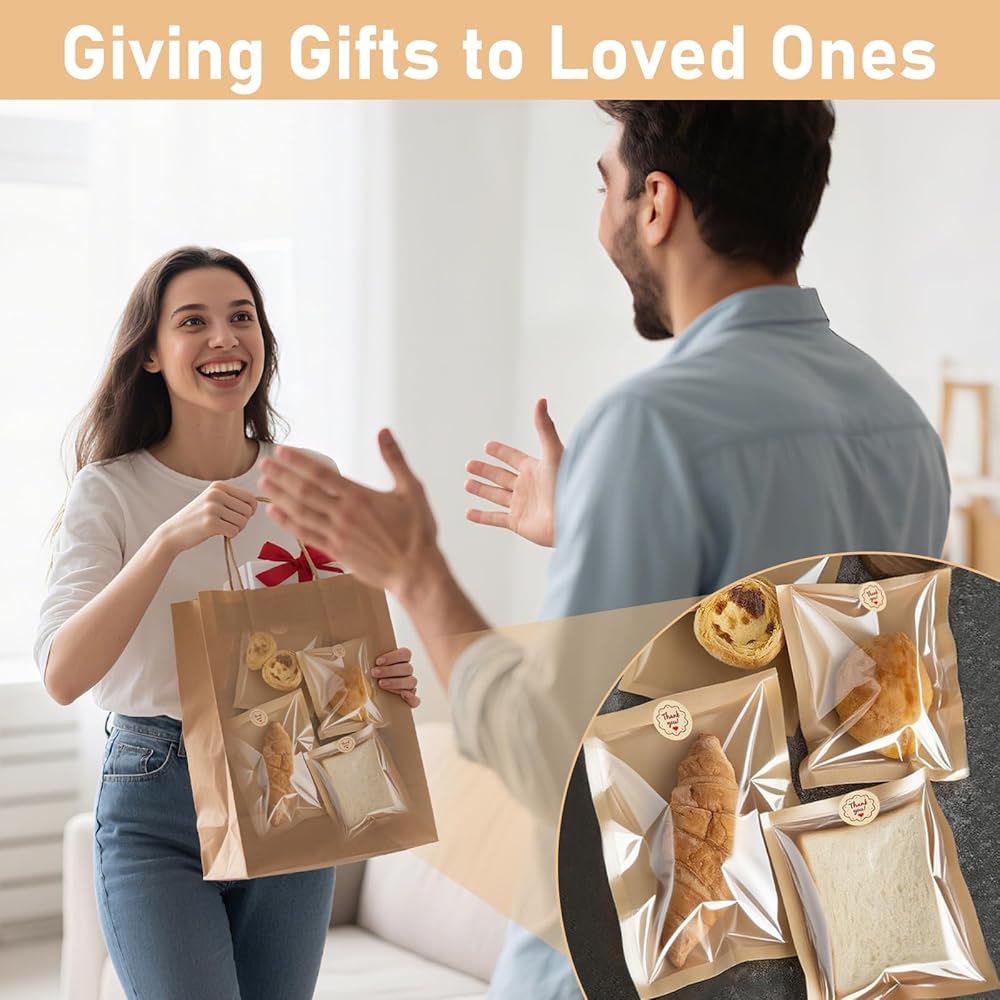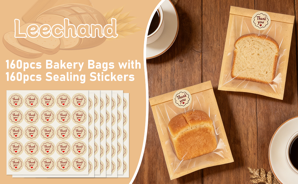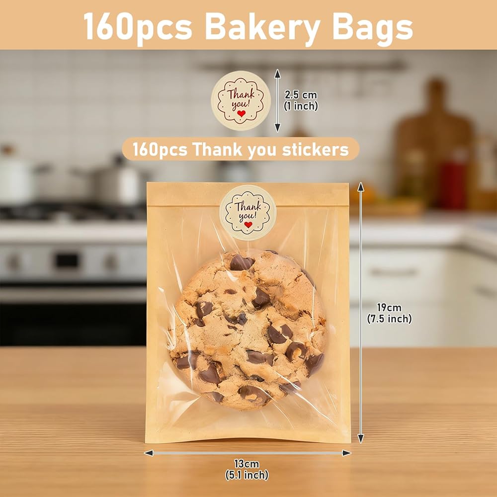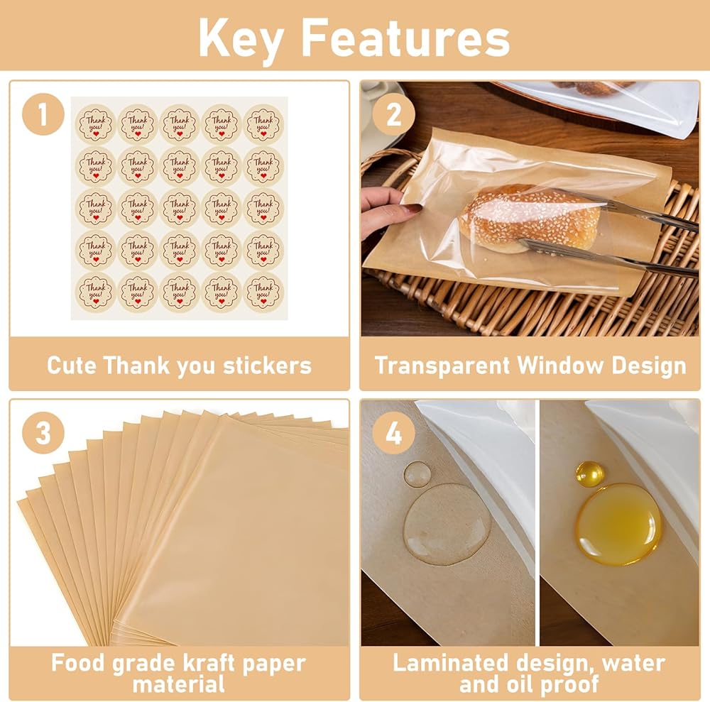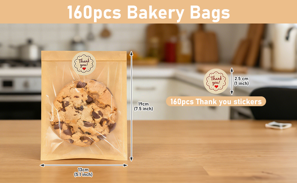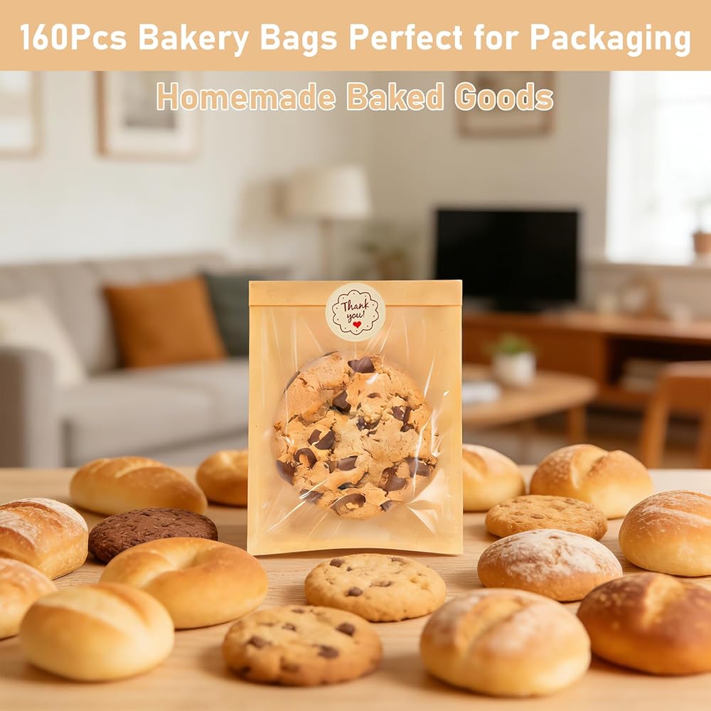عبوة اقتصادية مكونة من 160 قطعة: تأتي مع 160 قطعة من أكياس ورق الخبز (5.1 × 7.5 بوصة) مع نافذة، وملصقات شكرًا لك. يمكن استخدام أكياس البسكويت هذه في المخبوزات والبسكويت والسندويشات والوجبات الخفيفة والدونات والحلوى والشوكولاتة والفطائر والمعكرونة أو غيرها من المواد الغذائية.