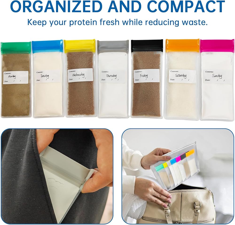 Color-Coded for Easy Organization: The 14 BPA-free and lead-free pouches are color-coded to help you pre-sort different supplements like protein, pre-workout, BCAAs, or greens—making your routine efficient and foolproof.