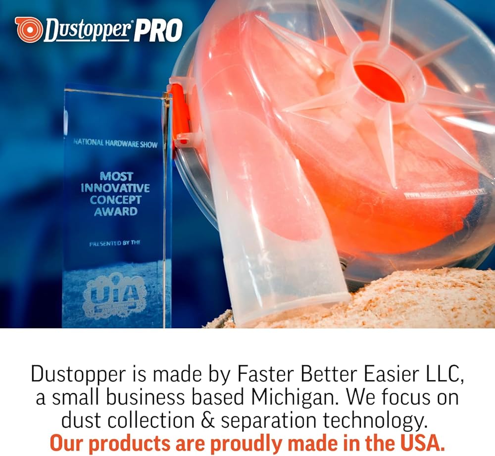 صُنع وتصنيعه في الولايات المتحدة الأمريكية: تم تصنيع Dustopper بواسطة شركة Faster Better Easier LLC ويتم تصنيع منتجاتنا وتصنيعها بفخر في ميشيغان، الولايات المتحدة الأمريكية.