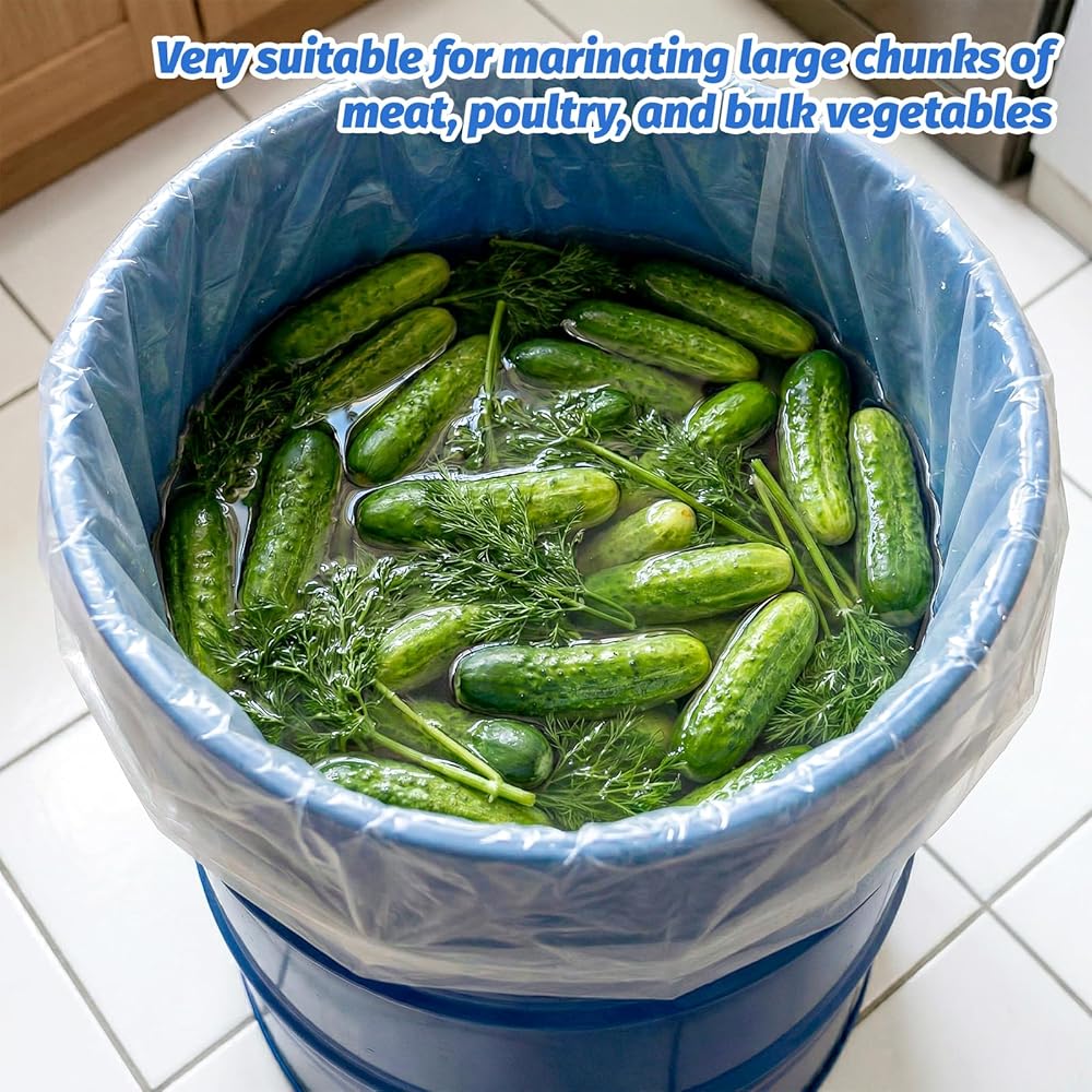 Premium Food-Grade Material :EcoBrisa drum liners are made from high-quality, BPA-free polyethylene that meets food-grade safety standards. Each bag offers a massive 55-gallon (208-liter) capacity with dimensions of 38” x 68”, making them perfect for marinating large cuts of meat, poultry, brining, and bulk storage of vegetables, nuts, or dry goods.