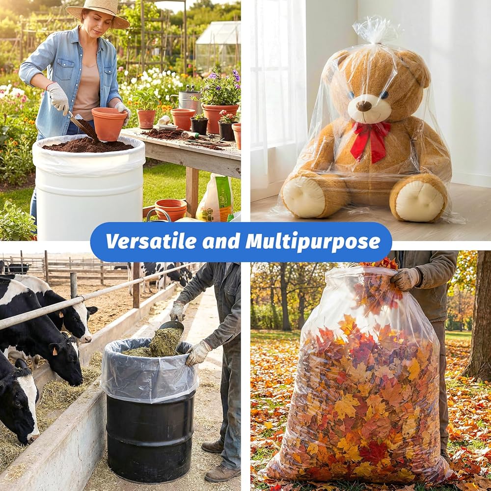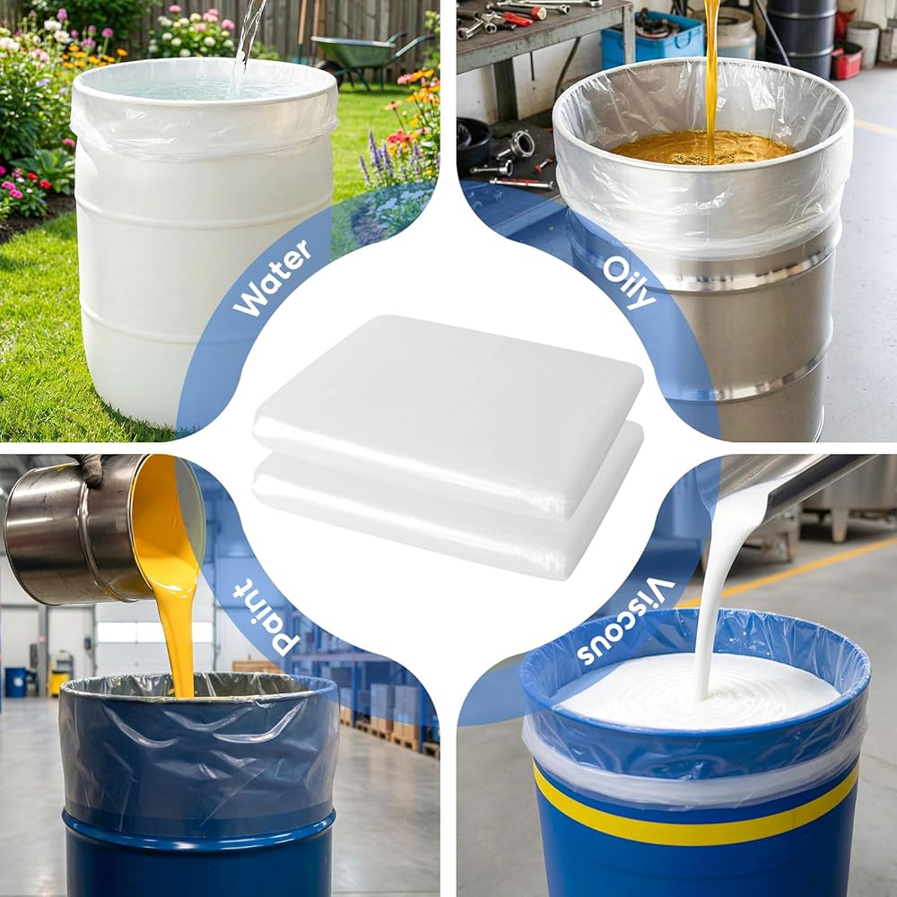 Transparent and Easy to Use :EcoBrisa clear plastic drum liners allows for easy visual identification of contents without opening the bag. They are ready to use—simply place them into your drum or container, fill, and tie the top securely for an airtight and organized storage solution.
