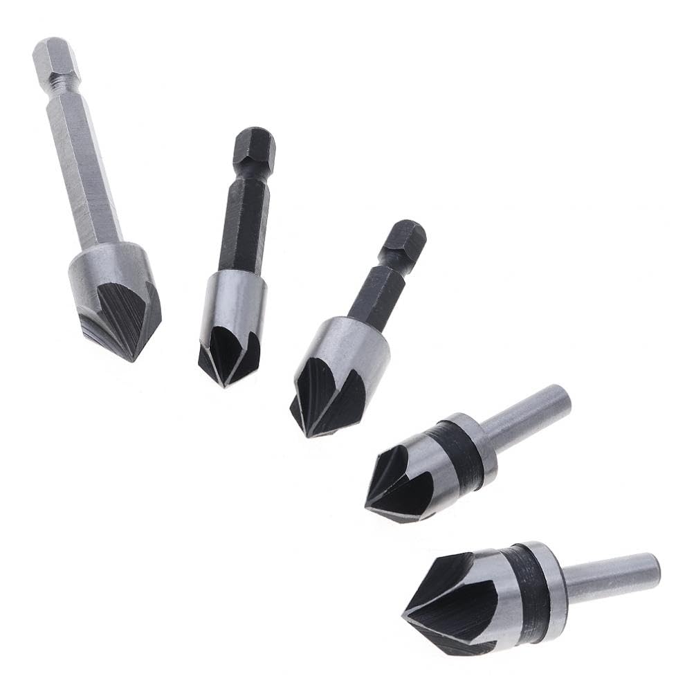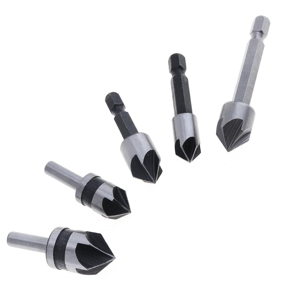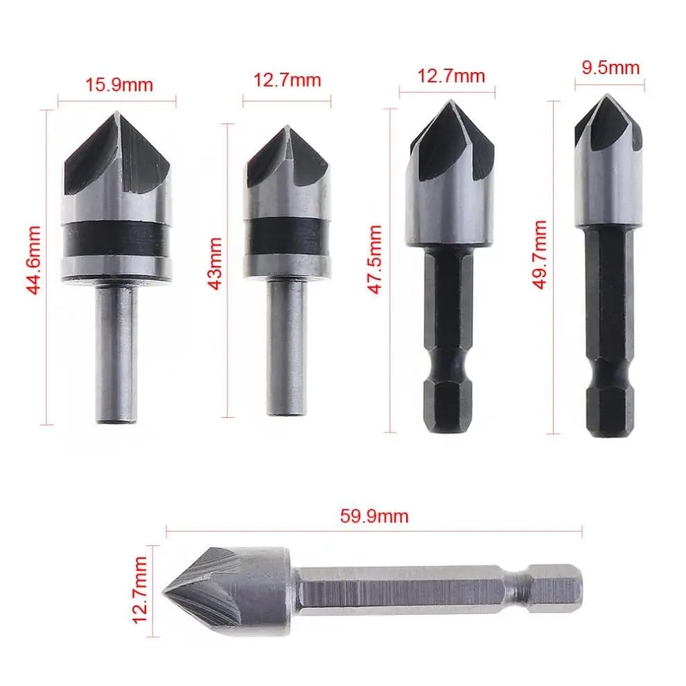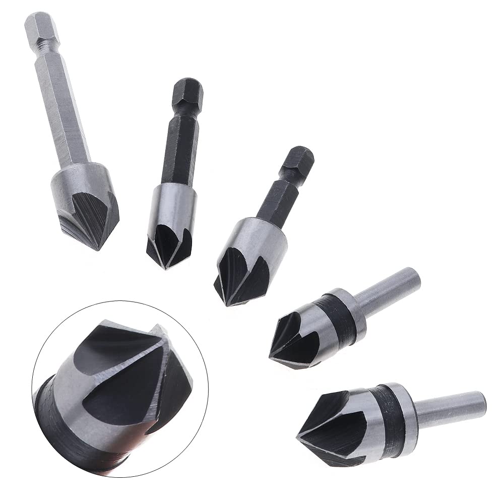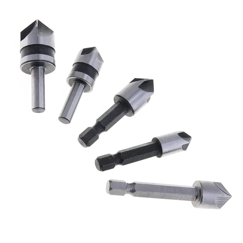 5 قطع أداة شطب مثقاب مركزي بفتحة زاوية 82 درجة ومقبض سداسي