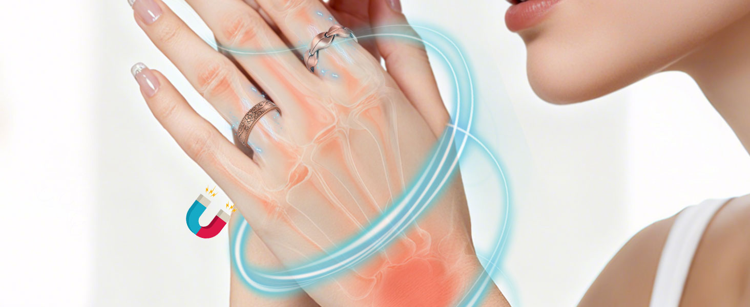 مغناطيسات أكثر قوة: تمت ترقية الحلقات النحاسية للنساء بـ 9 و7 مغناطيسات عالية القوة (3800 غاوس) لتوفير تغطية أوسع واختراق أعمق. يتيح لك هذا التصميم تجربة فوائد مغناطيسية عالية تركز على منطقة اليد والمعصم، مما يوفر شعورًا بالراحة والراحة ويعزز الشعور بالرفاهية العامة.