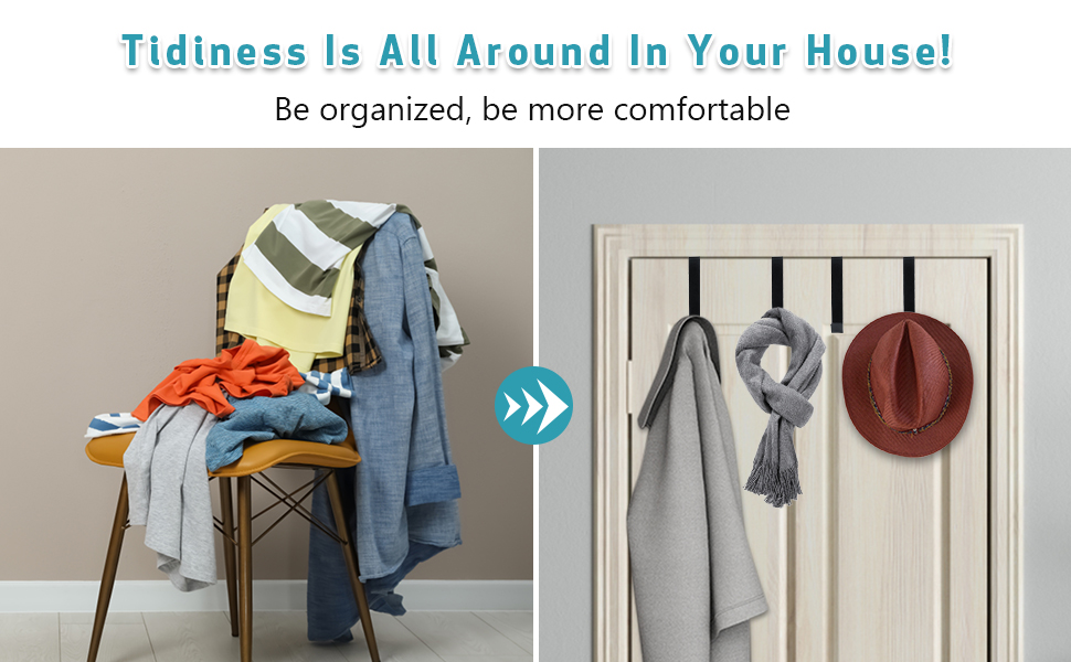 • تستخدم على نطاق واسع فوق الباب - يمكن تطبيق خطافات الأبواب المكونة من 5 قطع للتعليق على نطاق واسع على معظم الأبواب في منزلك. ضعها على باب منزلك الأمامي لضروريات الخروج مثل المفاتيح والمحافظ والمظلات. ثم احصل على مجموعة أخرى لغرفة نومك لتعليق الملابس مثل المعاطف والقبعات والأوشحة التي استبدلتها بعد عودتك إلى المنزل