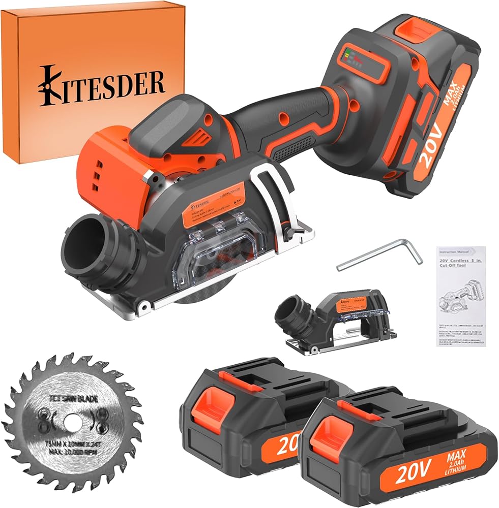 • Brushless 3-Inch Circular Saw Kit - Includes a circular saw, and tow battery, charger, comes with 1 saw blades. It features adjustable 45° cutting depth, a safety lock.