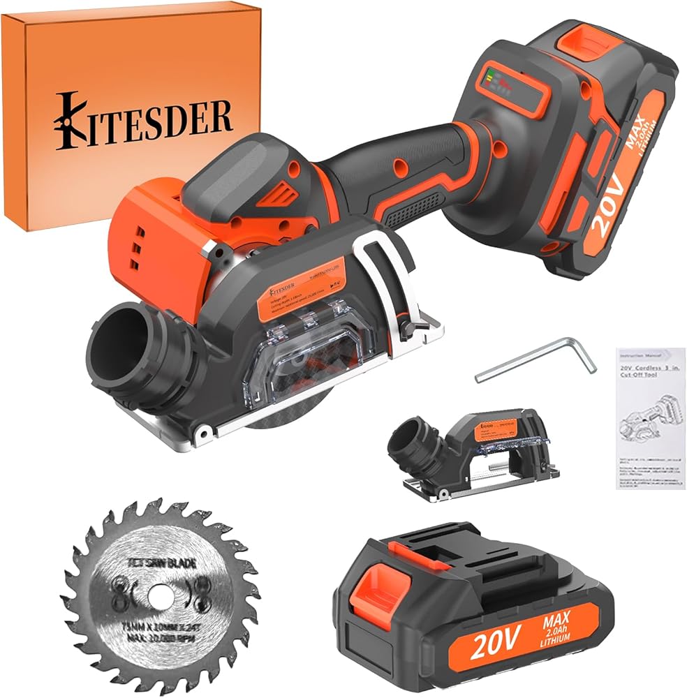 Brushless 3-Inch Circular Saw Kit - Includes a circular saw, and a battery charger, comes with 1 saw blades. It features adjustable 45° cutting depth, a safety lock.
