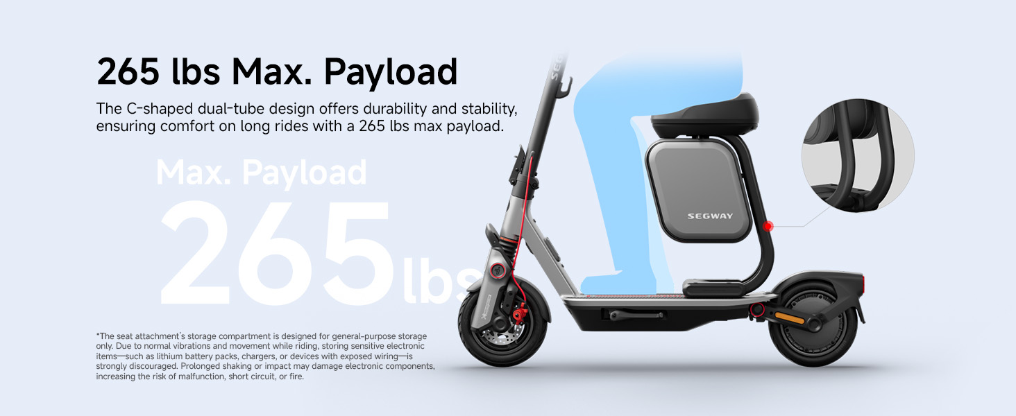 توافق عالمي - مصمم خصيصًا لدراجات Segway eKickScooters، يعمل طقم المقاعد هذا بسلاسة مع موديلات E3 وE3 Pro وF3 وF3 Pro وZT3 Pro.