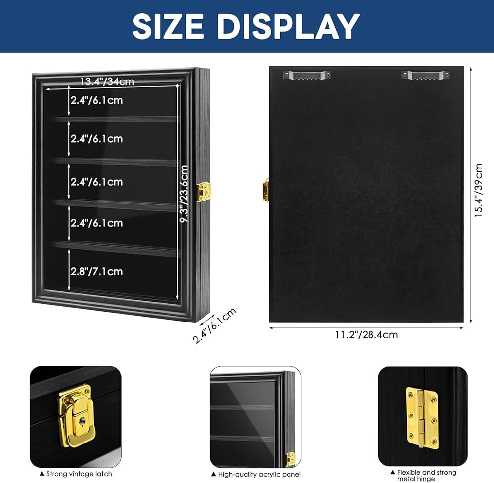 حافظة عرض سكين PiaoHao مع باب أكريليك قابل للقفل للحماية من الأشعة فوق البنفسجية بنسبة 98%، حامل عرض سكين عسكري خشبي قابل للطي على الحائط، حافظات عرض سكين الجيب للتخزين والتجميع، لمسة نهائية سوداء